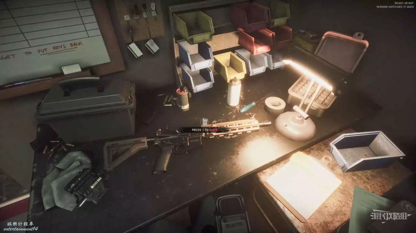 從簡報桌處即可選擇任務,而直走則可以找到工作台改造我們的武器。