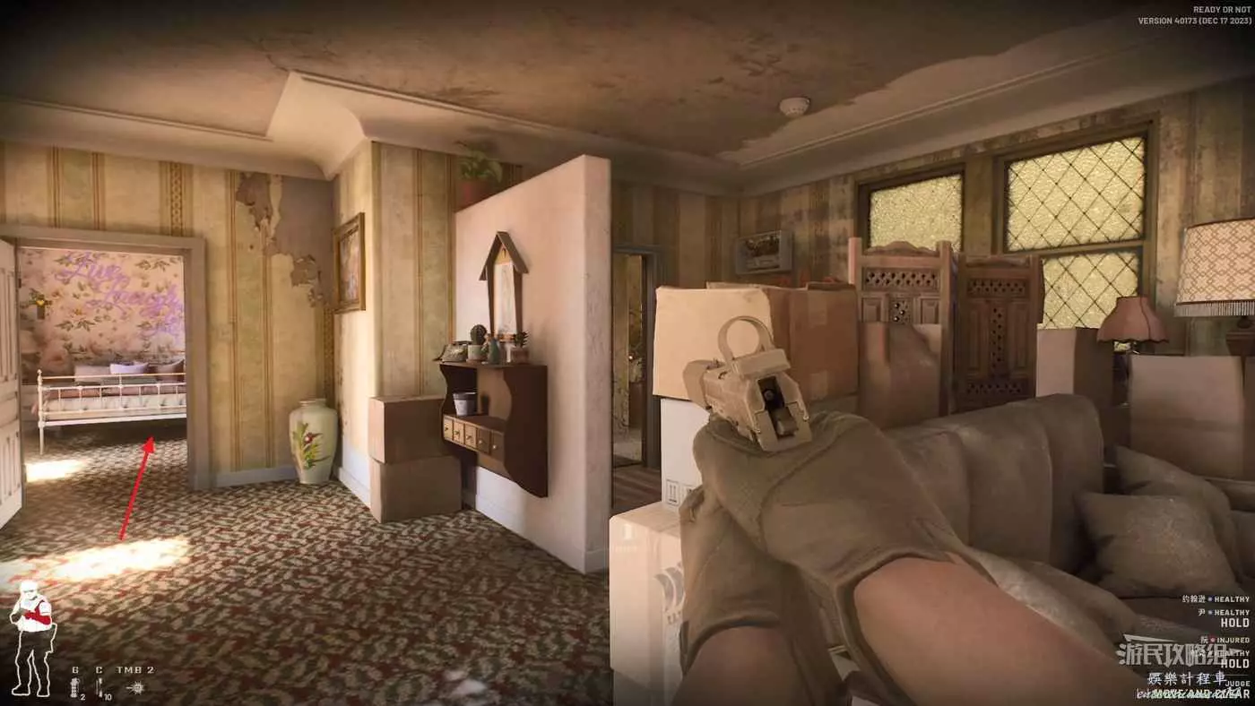 將2樓的其他房間搜索完畢後,直接從213的2樓前往212的2樓,前方的房間內大幾率會有持械敵人,建議直接使用閃光彈燈攻堅。