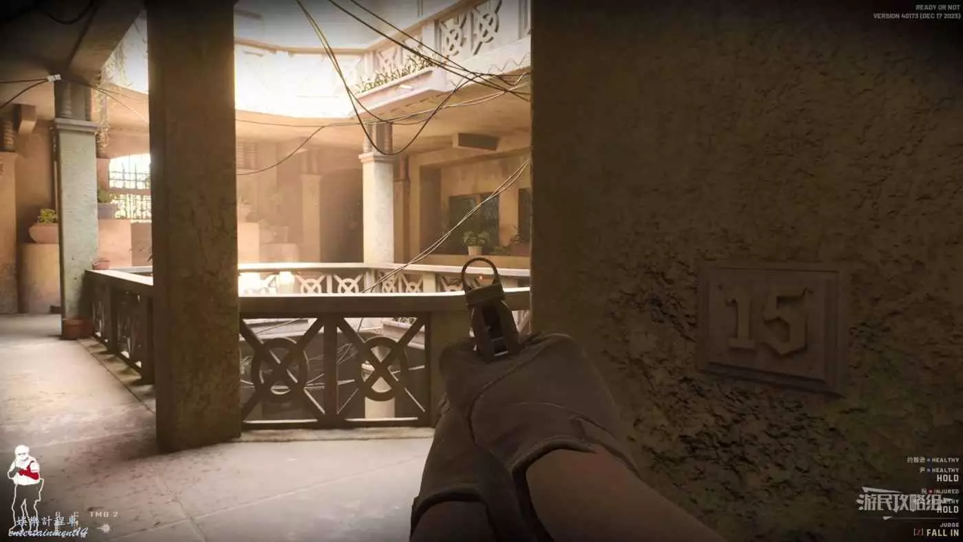 從正門進入的話容易被高樓層的敵人直接當靶子打,建議走右側的小樓梯。