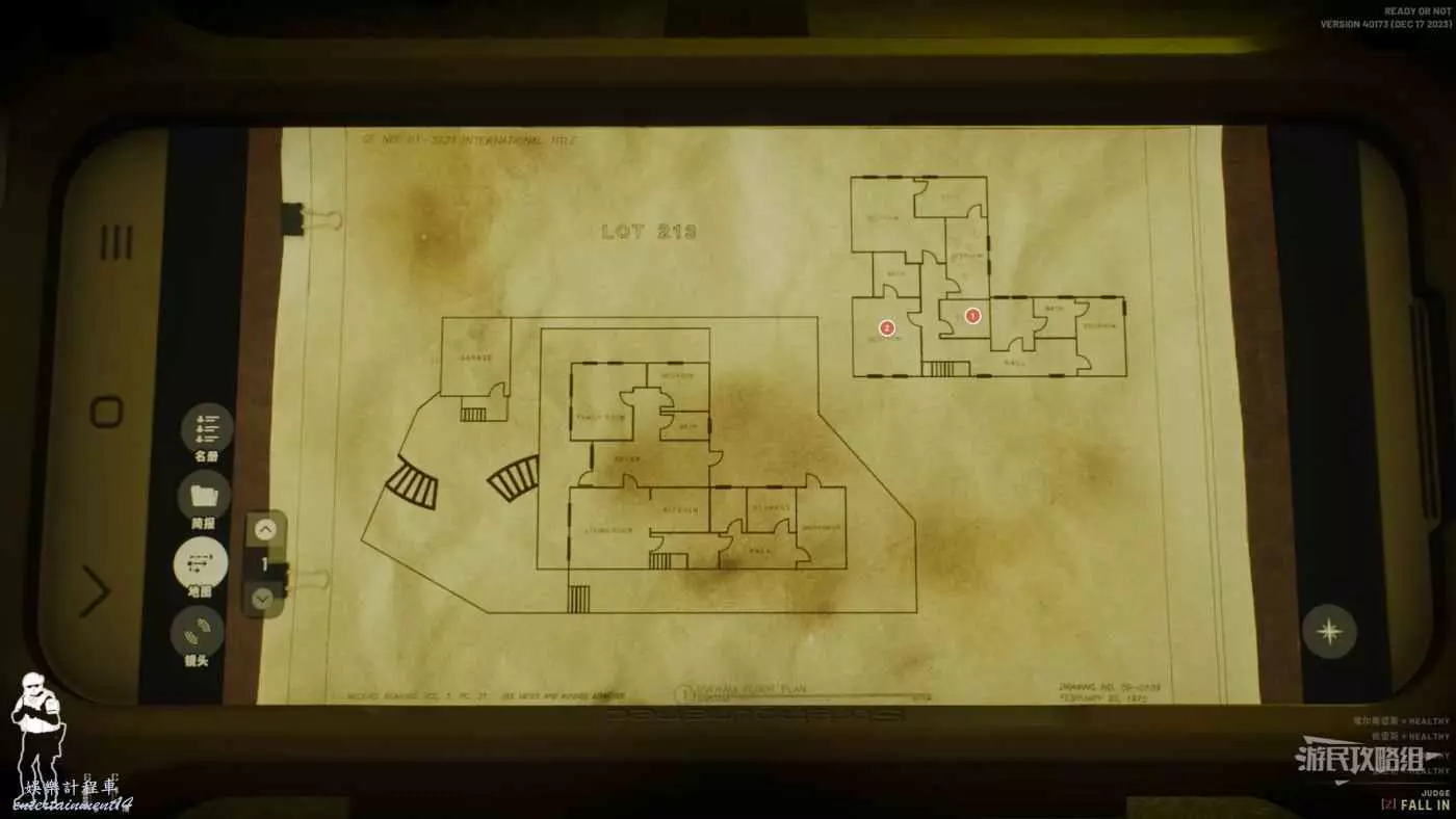 該地圖是213房間也就是本地圖的小房子的地圖,標註1為【修改】,標註2為【修改】。都在第二層中。
