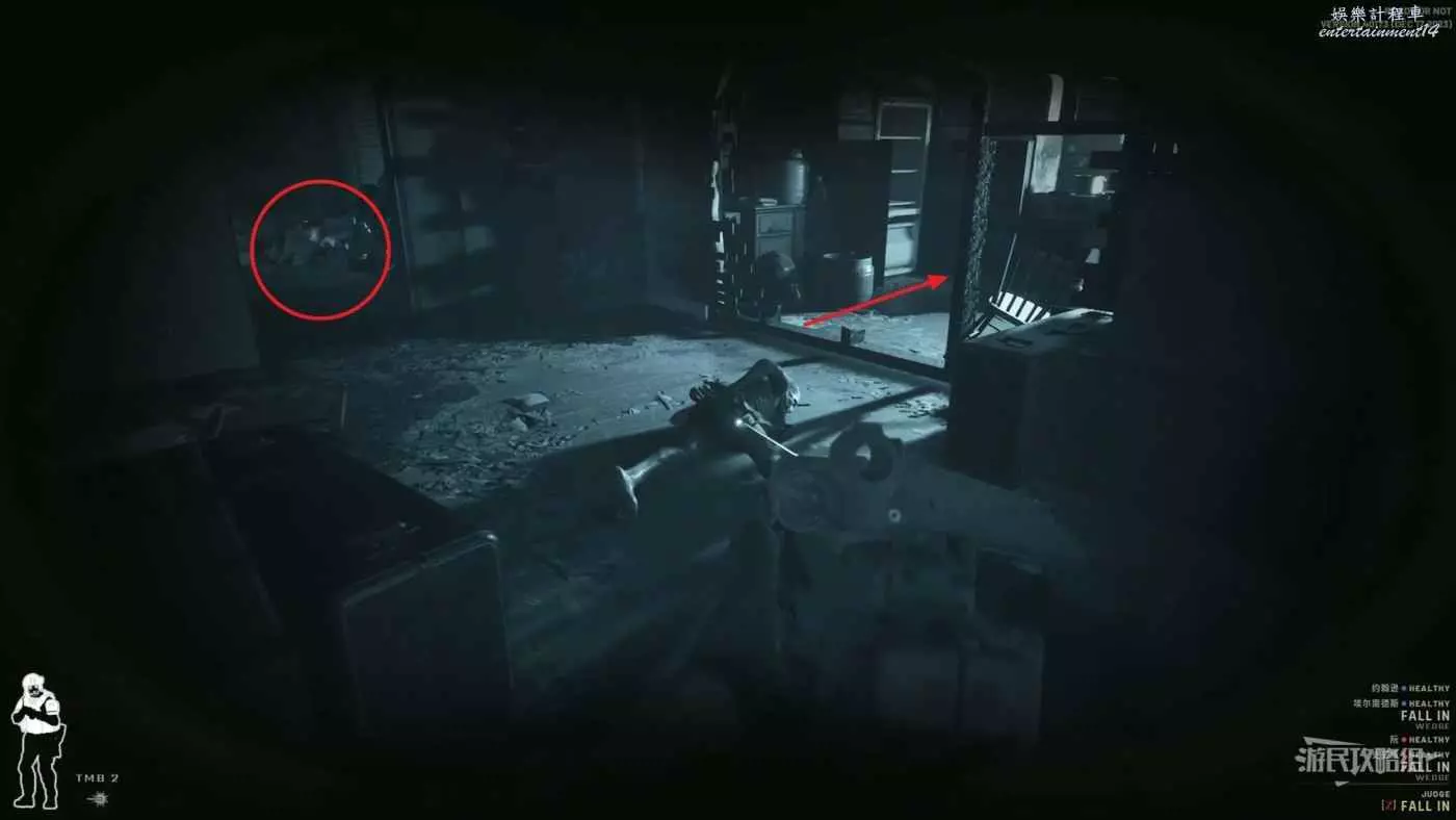 當快要到達2樓是注意右側的門可能已經被打開,如果貿然露頭會被直接幹掉。