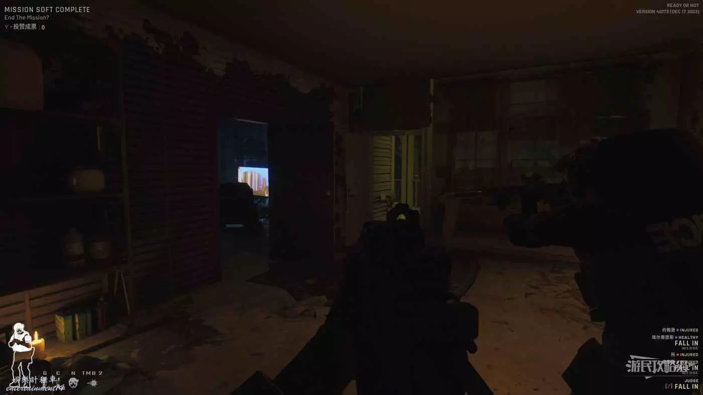 來到213小房子的前方,首先通過窗戶來查看裡面有沒有敵人,確認安全後開門。