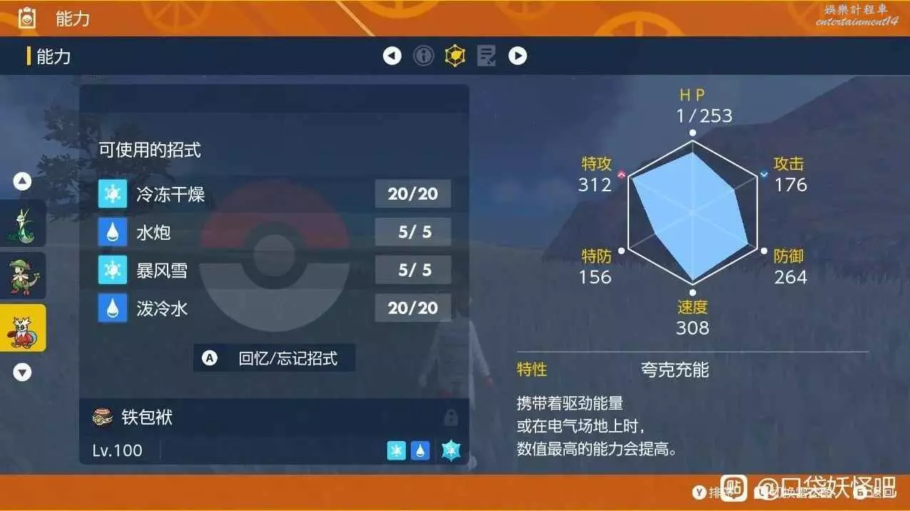 寶可夢 朱紫 (Pokemon Scarlet Violet) 最強鐵包袱打法心得 22 12 月 2023-12-22 廣告 作者:空竹pf 來源:口袋妖怪吧 我用瑪機雅娜帶貝殼單刷的,開局就放雪天和極光幕,我開局放兩次冥想,特性魂心,npc也死了一兩次,特攻就有3-4層了,開始輸出。由於是鋼系,它會一直放水炮。半血清我方狀態和開電場,由於它特性是誇克充能,此時非常危險它傷害很高。 我之前用鐵臂膀打,完全不行,開局一個暴風雪,直接半血,鼓腹都放不了。 我又用鐵頭殼單刷了,可以共用電場,配置在圖片中。