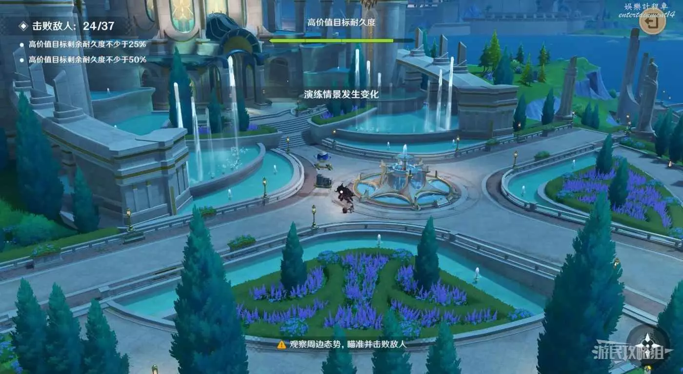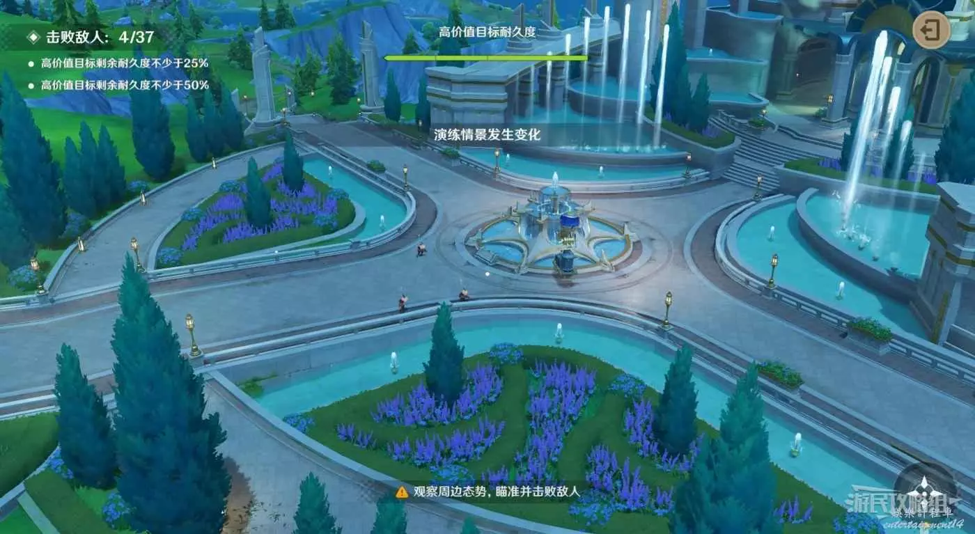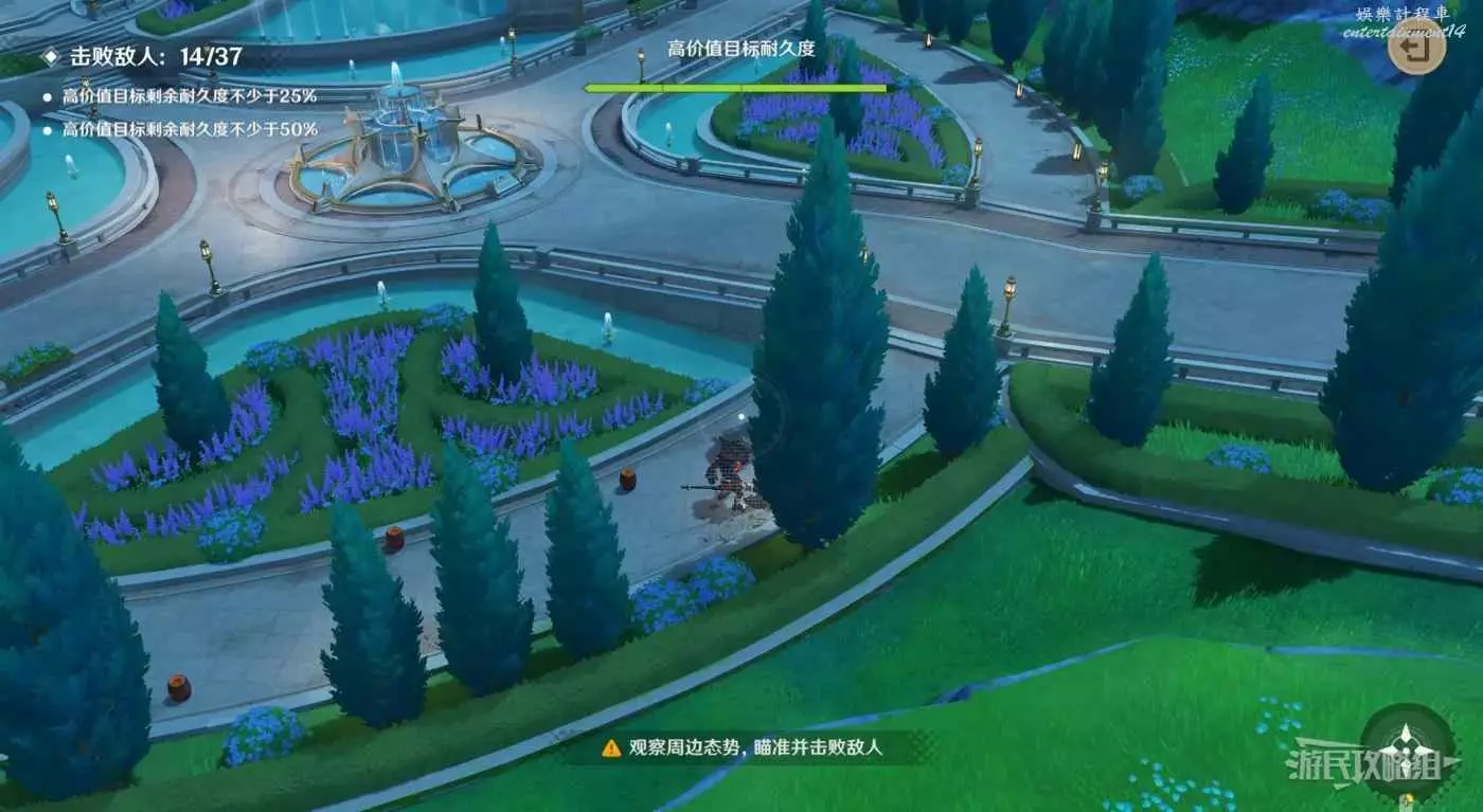 前兩波會在貨運氣球兩側分別出現1名射手,沒有什麼需要注意的,依次擊殺即可。等氣球到達噴泉位置時演練情景會發生變化,轉彎的位置會出現3名射手,依次將射手擊殺即可。
