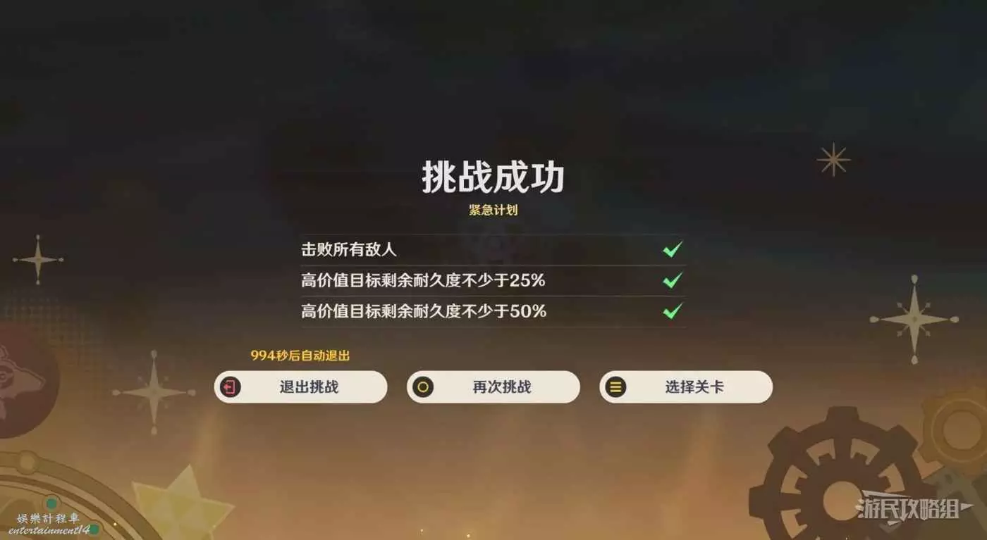 擊敗所有敵人、高價值目標剩餘耐久度不少於25%、高價值目標剩餘耐久度不少於50%