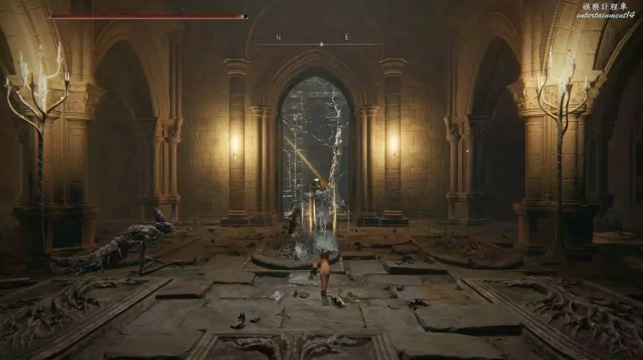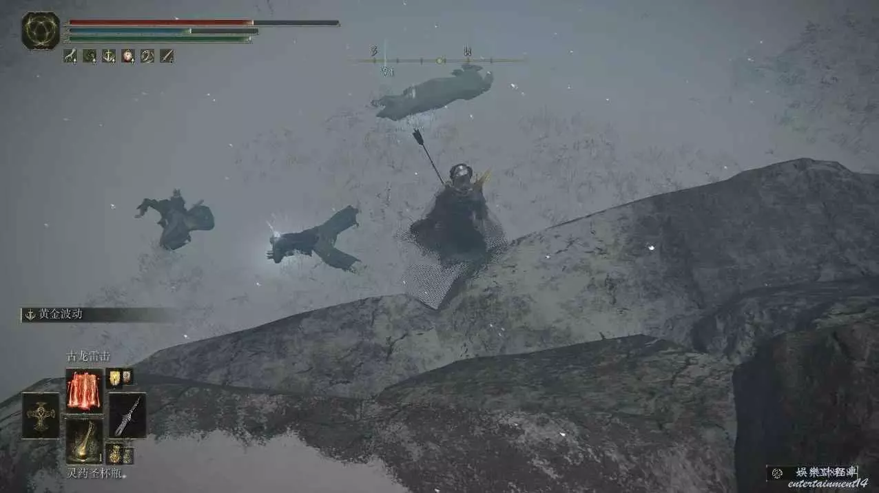 來到牆根,用壓制性武器或戰灰打死騎士即可,因為這個騎士必定先放聖律,很容易先手壓制