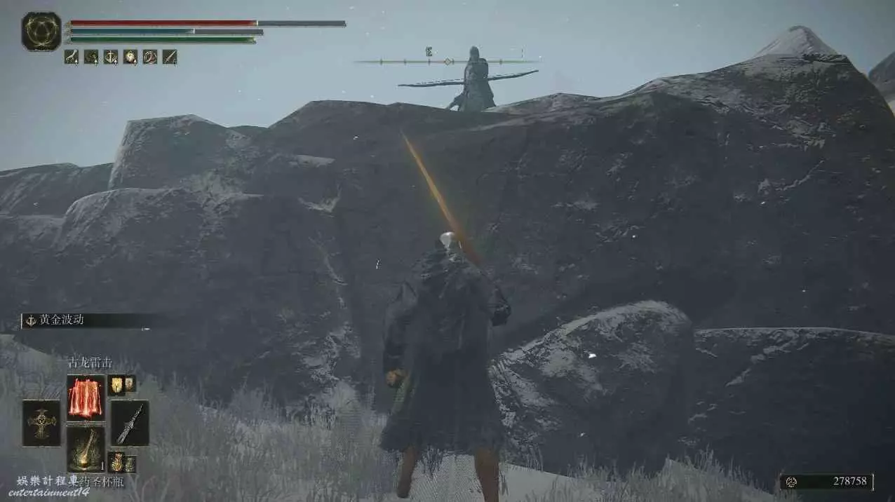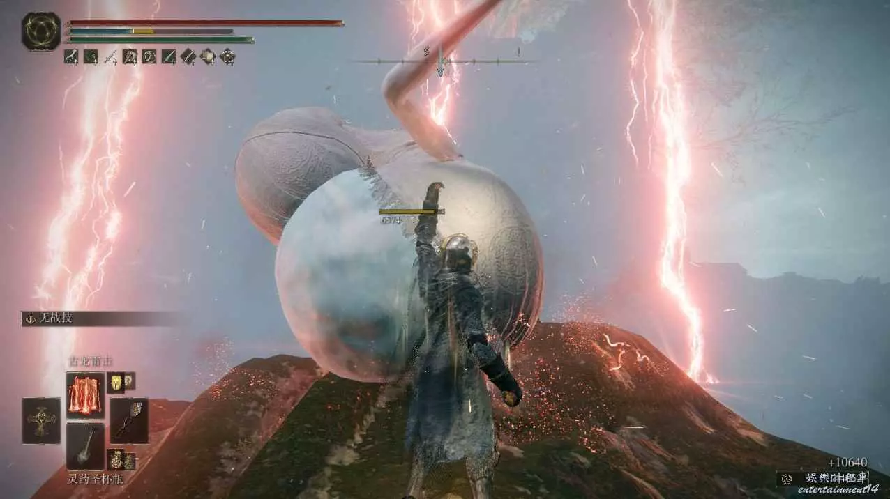 在到超大杯前上好buff,喝靈藥加黃金樹立誓,對超大杯蓄力古龍雷擊即可。