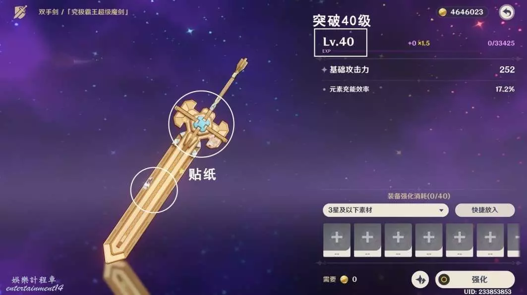 2.強化並突破40級,劍格/劍身出現美露莘貼紙;