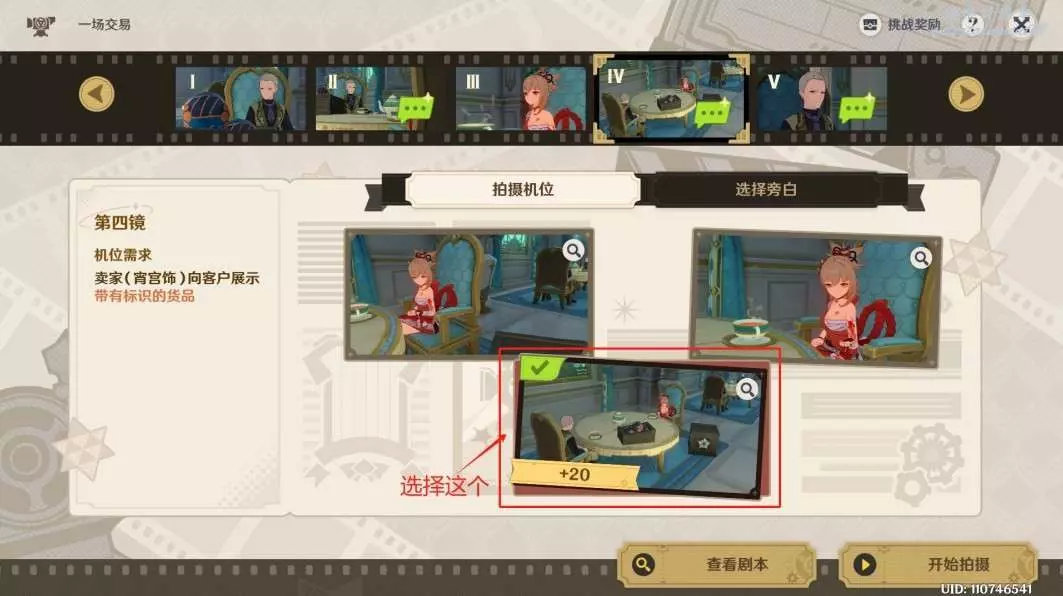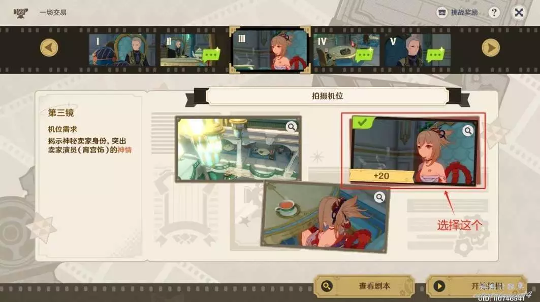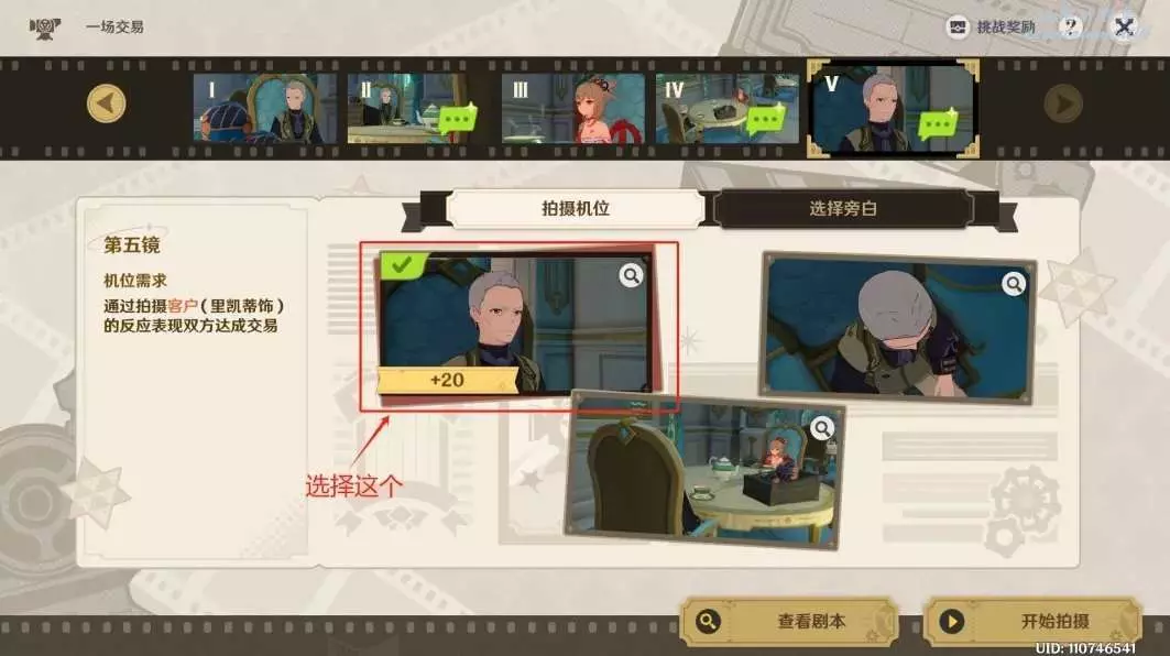 ◇ 第一鏡拍攝機位:選擇中間的圖片。