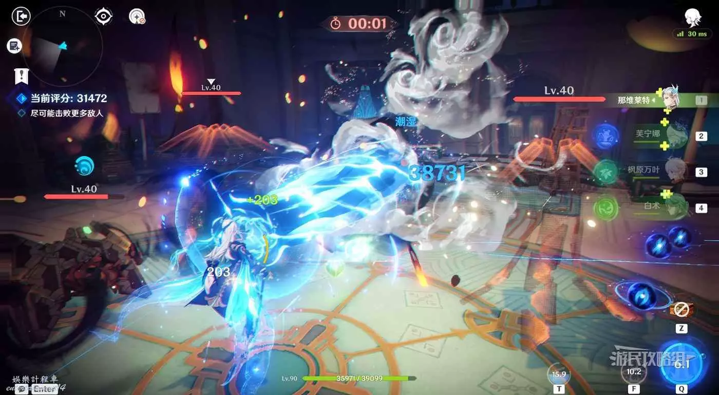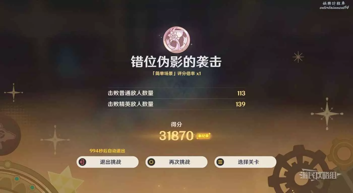 推薦積分倍率選擇1倍,選擇經典雷國陣容,雷電將軍充分利用特技光效來清怪,班尼特戰技為香菱充能/爆發增傷+治療,香菱爆發打出傷害,行秋掛水。