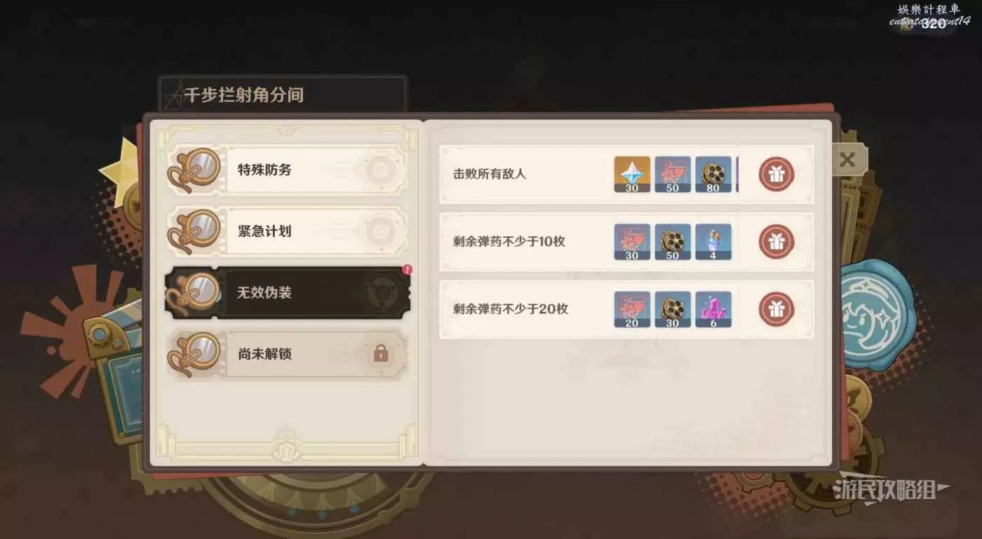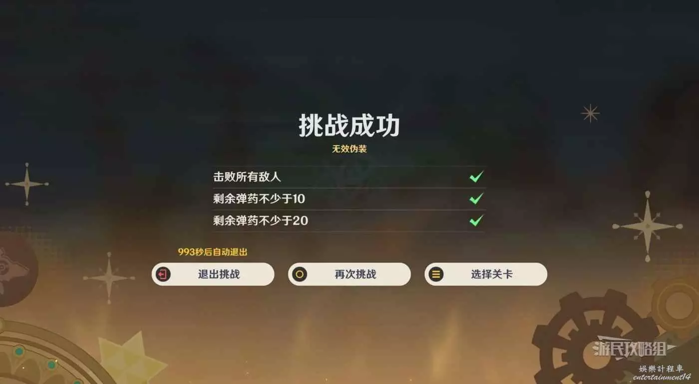擊敗所有敵人、剩餘彈藥不少於10枚、剩餘彈藥不少於20枚