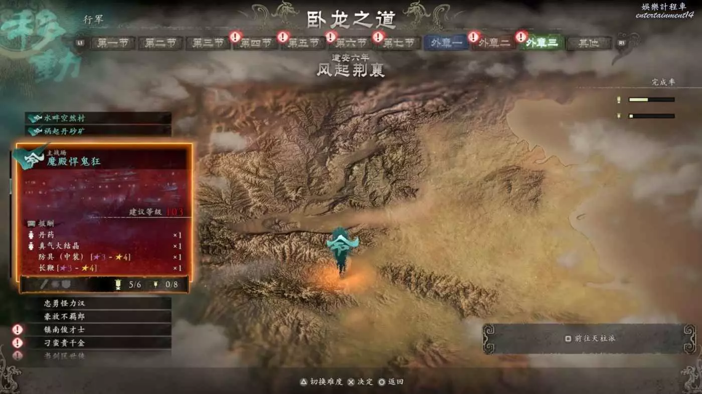 逐鹿中原的故事是在主線第五章初期開啟(袁紹襲擊曹操)、稱霸江東的故事是在主線第四章中段開啟(孫堅被妖怪化),不過風起荊襄的故事是需要整個遊戲主線劇情完結之後——不過其實也沒差了,因為推薦等級都是接近100,也就是在主線流程通關以後了。