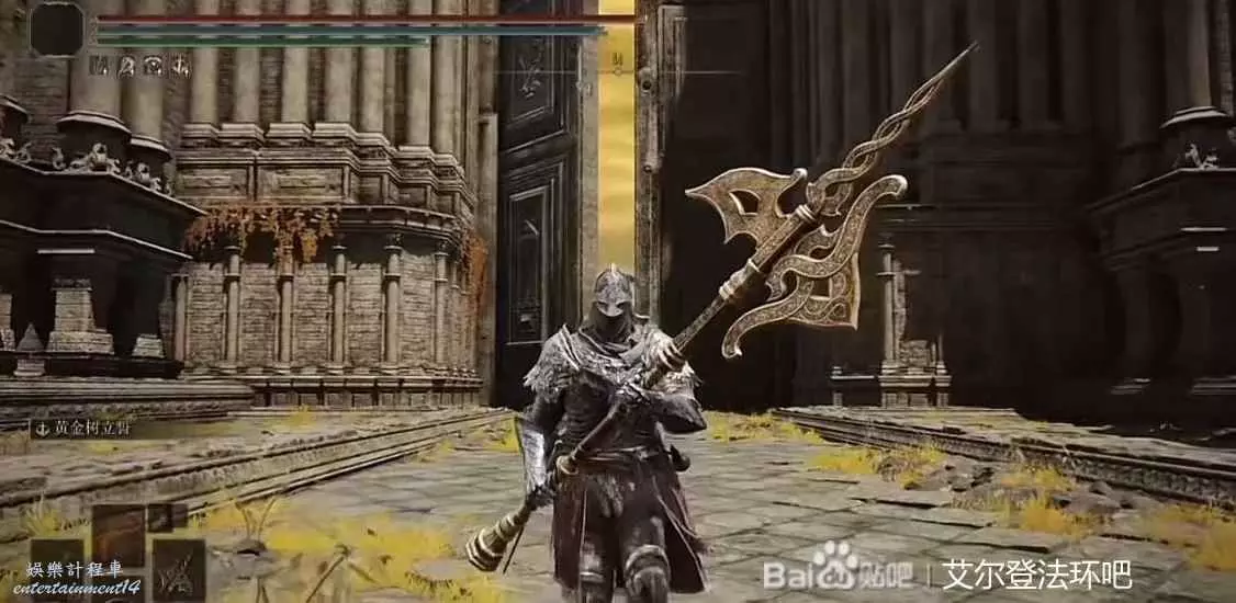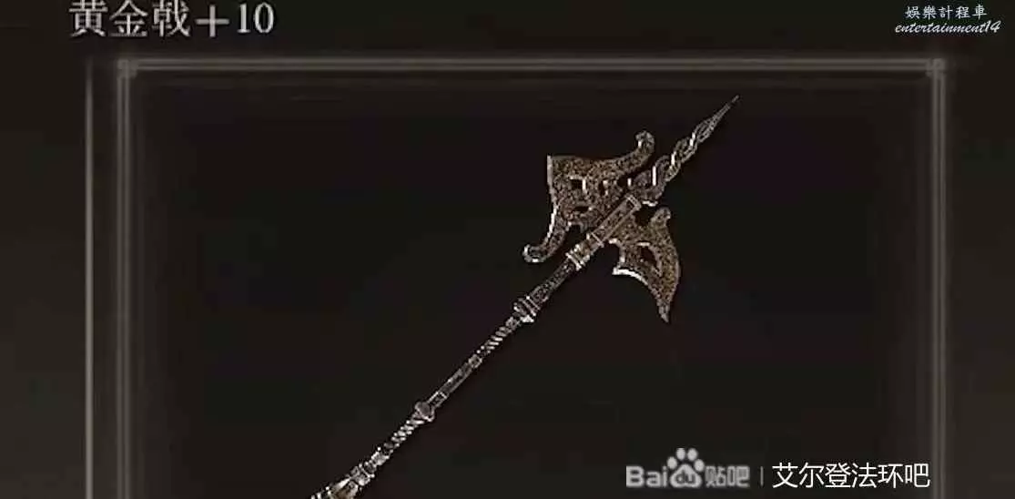 第三把武器黃金戟,萌新費盡千辛萬苦打贏了大樹守衛,拿到了這把武器,然而這把武器需要力量30點,前期用不上,中期聖抗太高,傷害又不突出,戰技又是黃金樹立誓在武器中不如老將的軍旗。