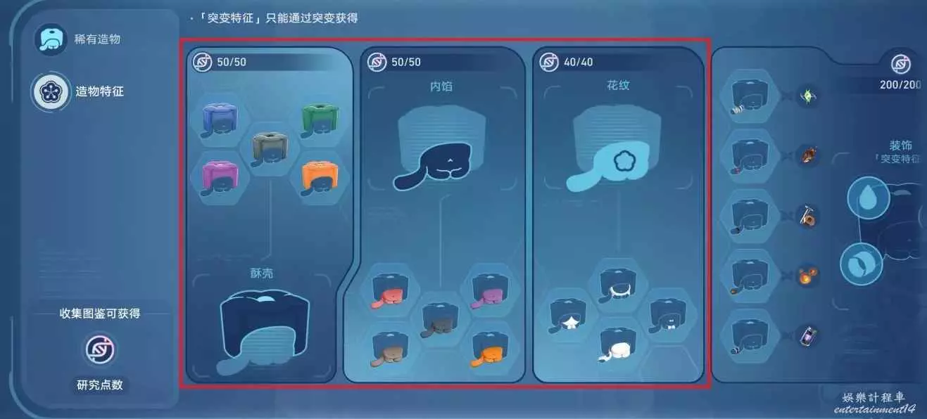 2,我們可以通過解鎖新的特徵,和培育稀有造物兩種方式升級