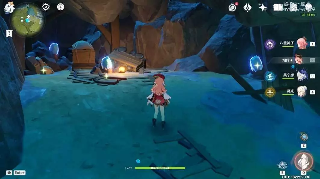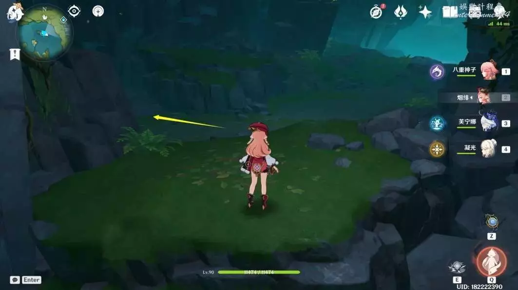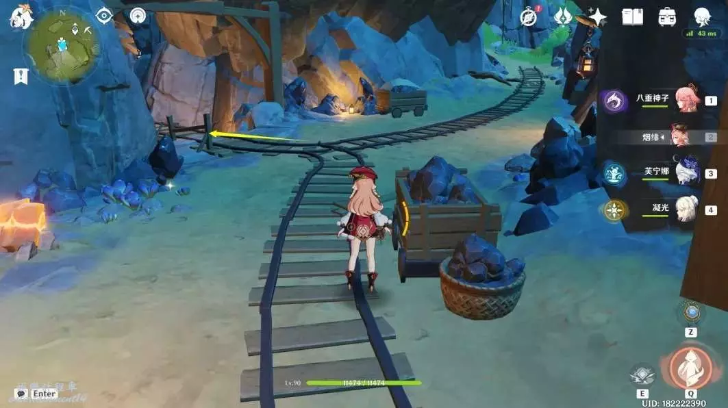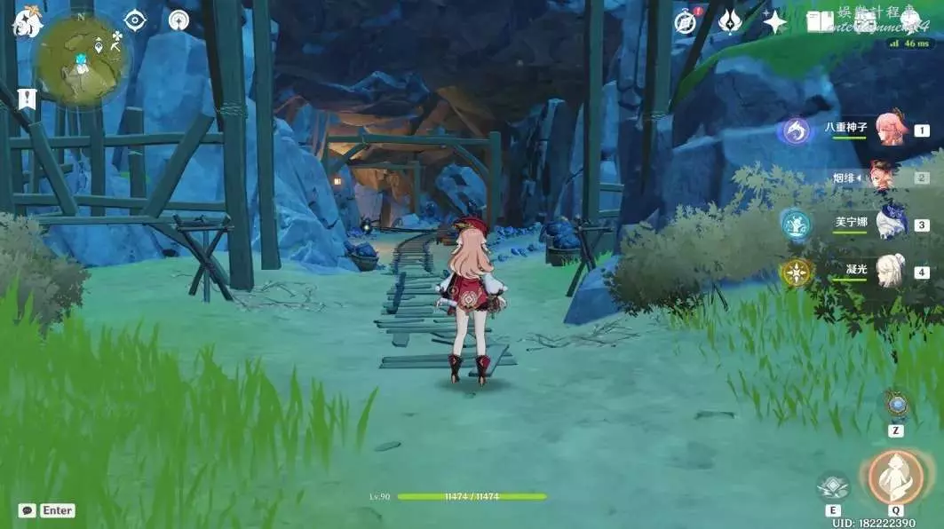 (14號~16號)明蘊鎮北邊傳送點,轉西南方向視角一直衝刺,前方有丘丘暴徒守著一個礦道口
