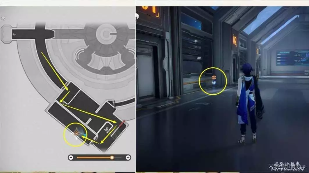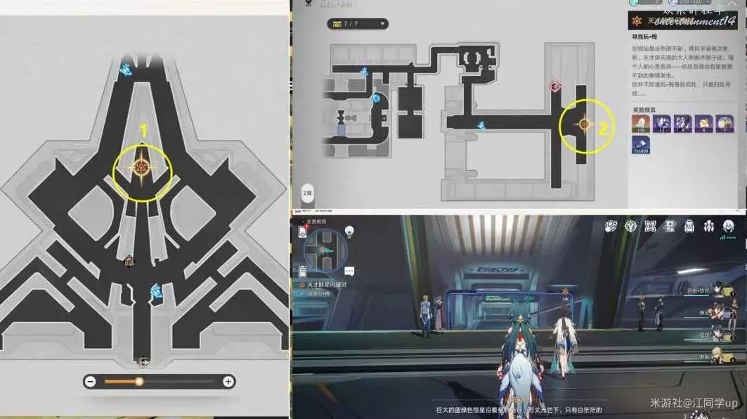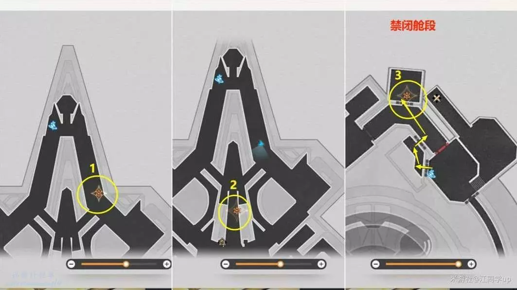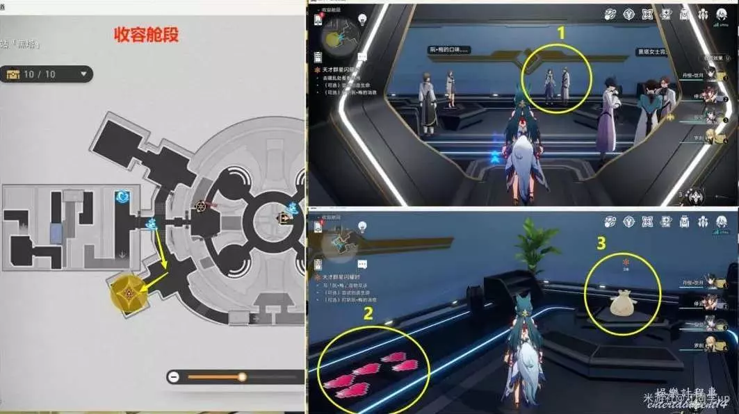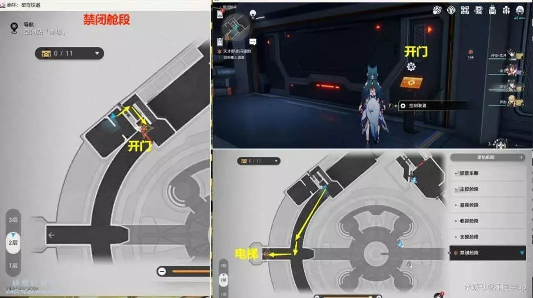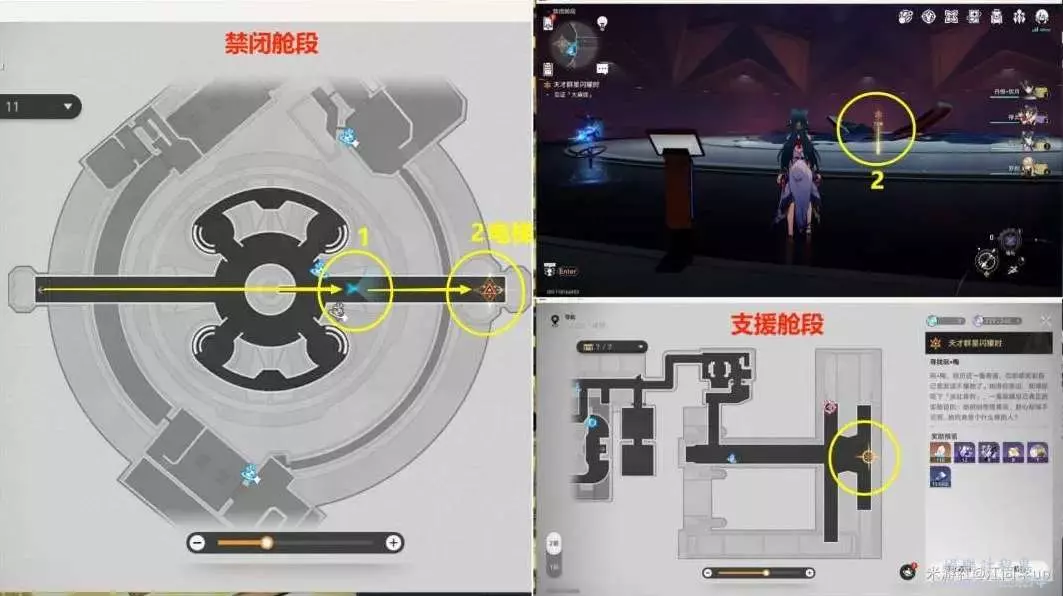 (14)從上圖電梯上來後,繼續追蹤去1任務點,然後再坐右邊電梯去2任務點,最後再去【支援艙段】過完劇情後,第一階段任務結束,同時自動接到第2階段任務