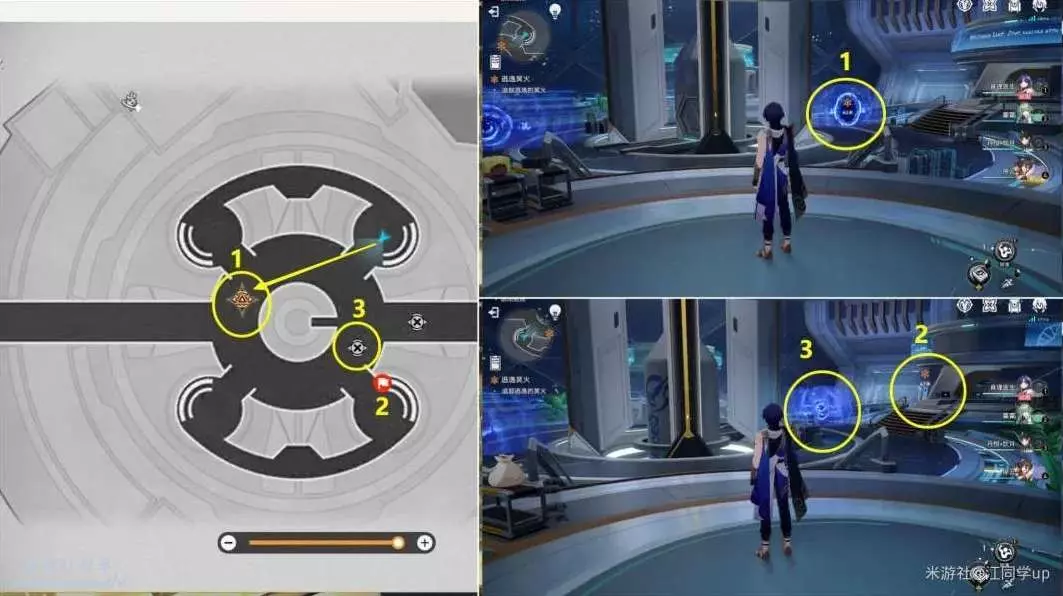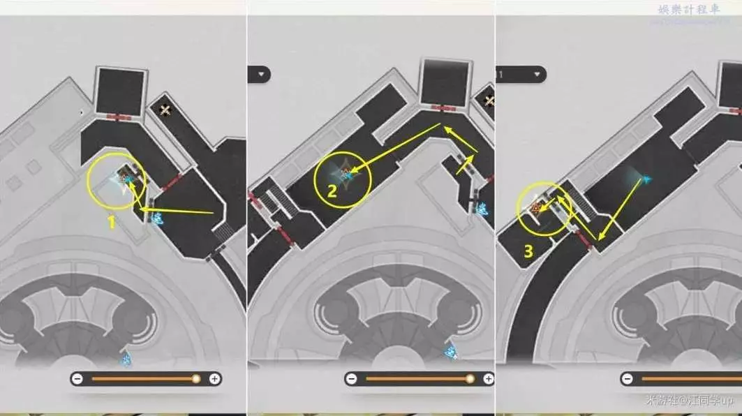 (22)接下來先進入下圖1傳送門,會傳送到2傳送門地圖,然後再進入下圖2傳送門後,就會被傳送到3任務點樓層