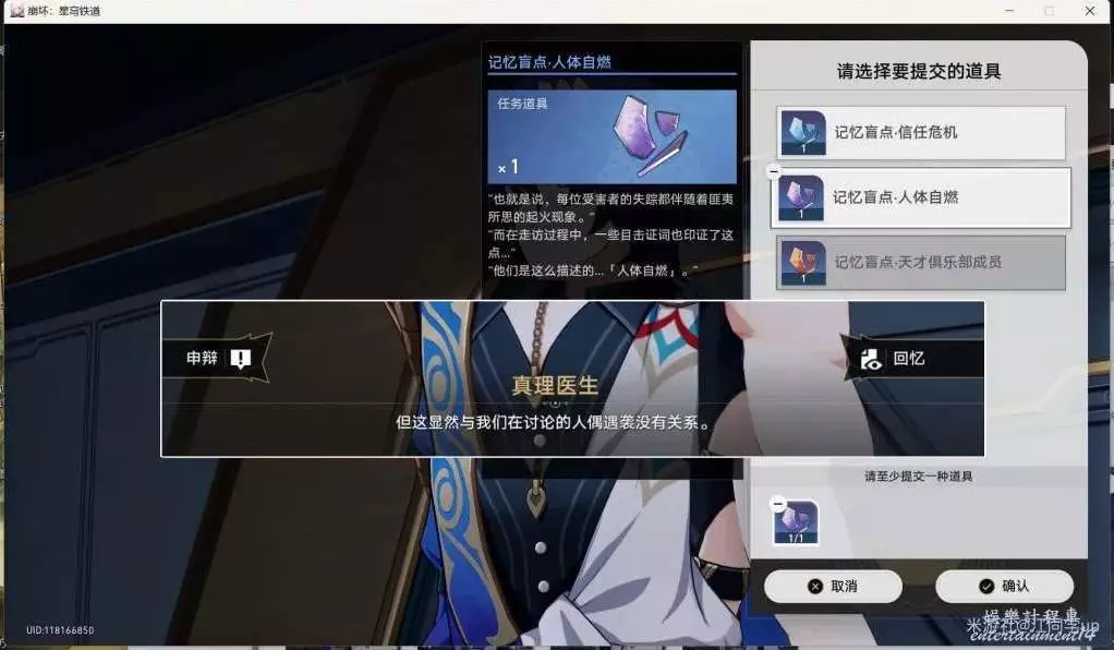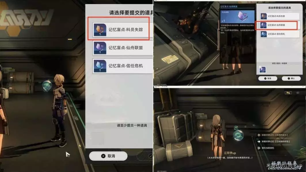 (5)在互動上圖的憶泡後,會傳送到下圖位置和【艾絲妲】對話【拋出記憶盲點】後,選擇第一個【記憶盲點·信任危機】提交