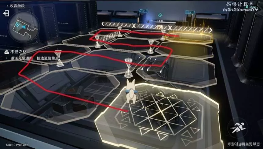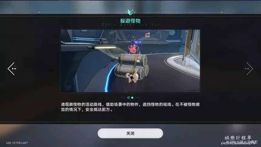 進去之後,面前會有兩個怪物在遊蕩,我們需要在右邊的怪物面向右方,左側怪物面向電梯方向的時候,向著標記處前進。