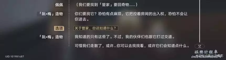 通過和造物交談,我們得知奇物【分裝快樂】被【管家】給偷走了。