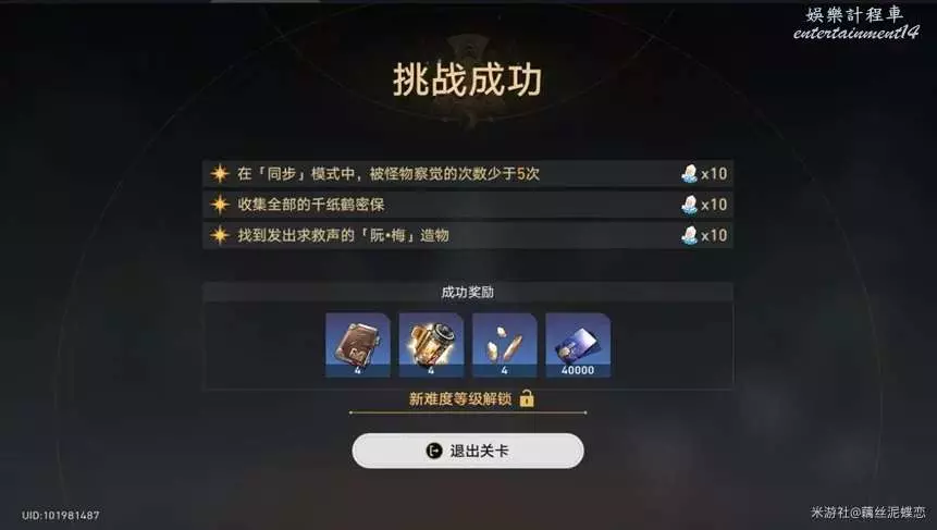 目標:被怪物察覺的次數少於5次;收集全部的千紙鶴;全部救出求救的阮·梅造物。