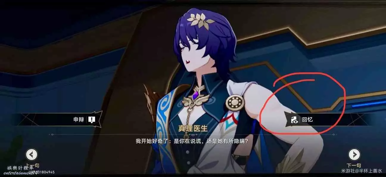 崩壞 星穹鐵道 1.6主線真理醫生質詢對話選擇教學 30 12 月 2023-12-30 廣告 作者:半杯上善水 來源:米遊社論壇 片段1:說到“黑塔的收藏多如繁星”點擊回憶選“天才俱樂部成員”(第一個我沒截到圖,注意看對話) 前段2:說到“我開始好奇了”點擊回憶選“信任危機” 前段3:說到“與討論的人偶遇襲沒有關係”,點擊回憶選“人體自燃”