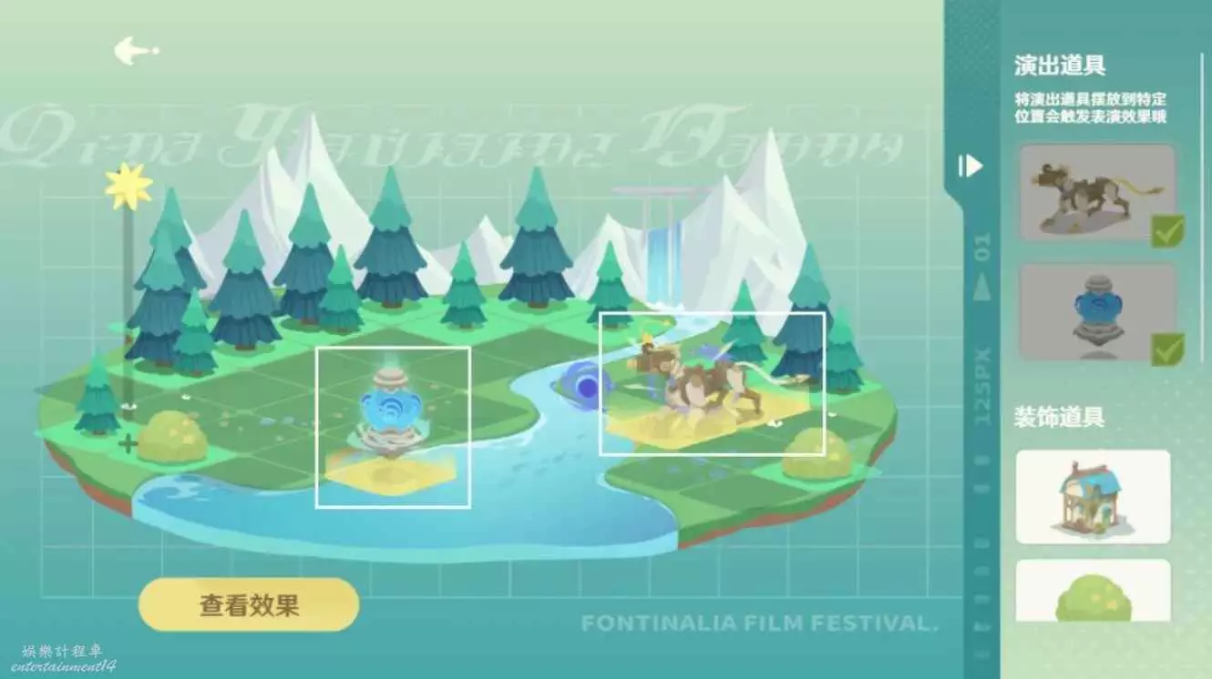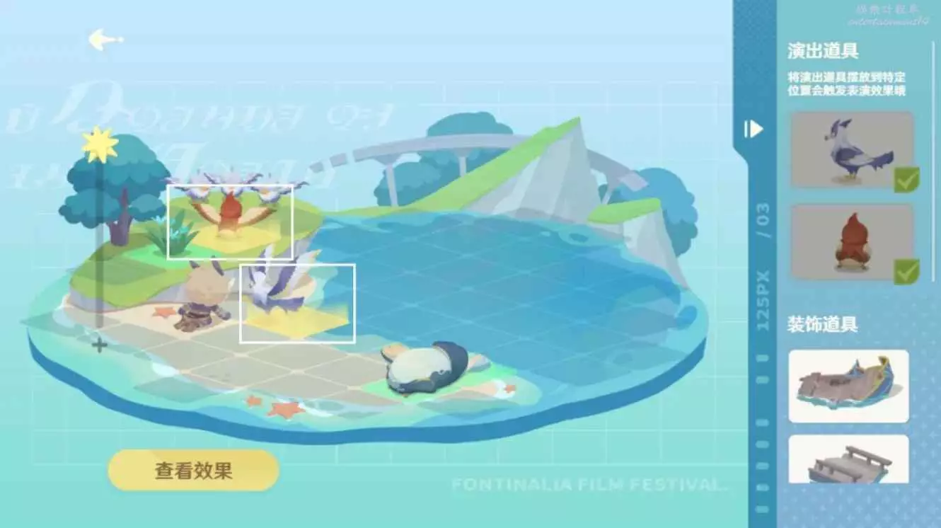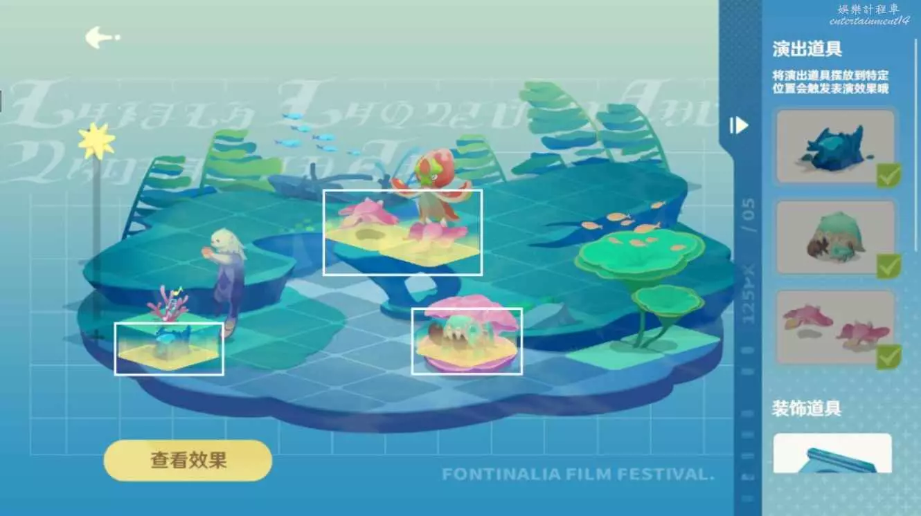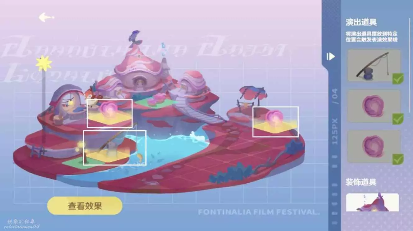 2.將演出道具放置於圖中方框位置;