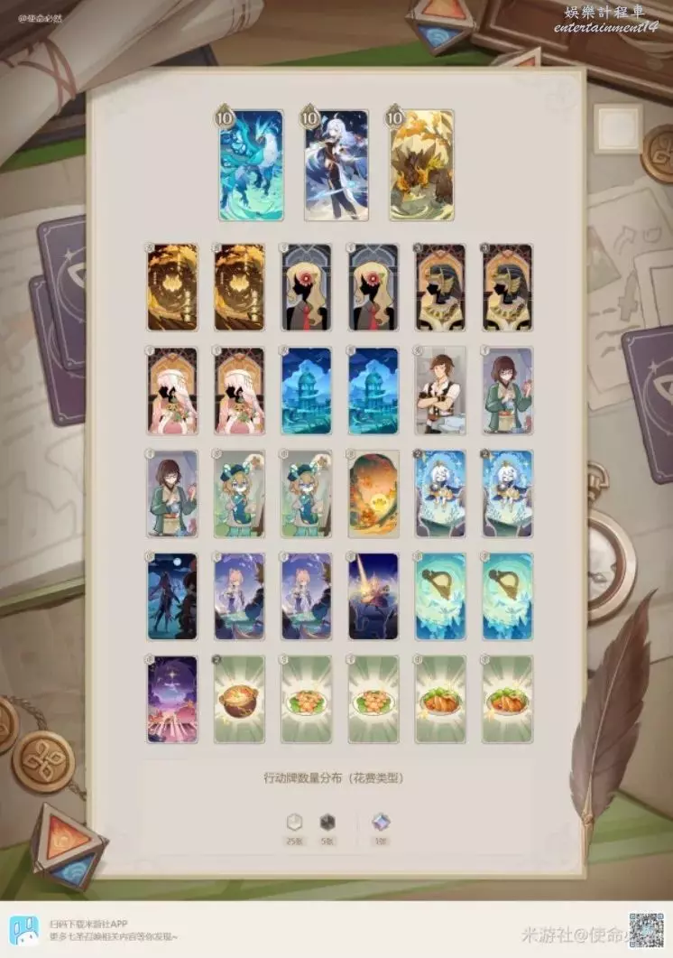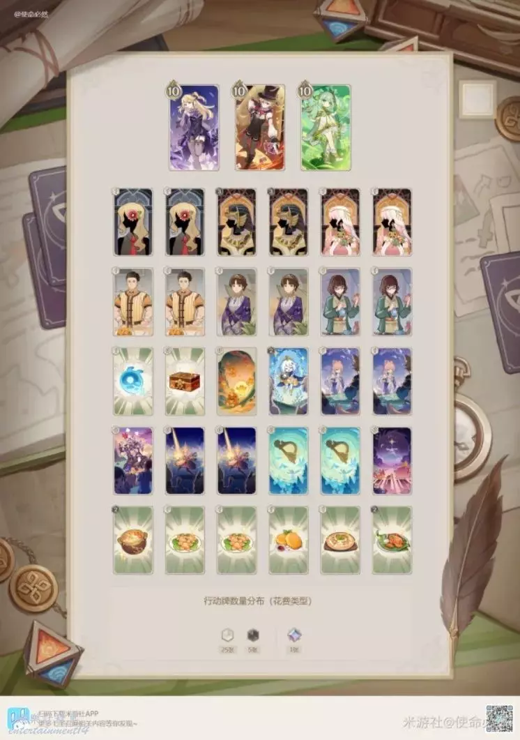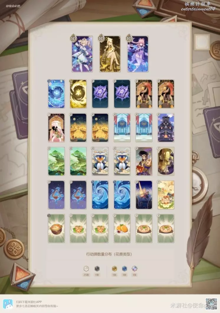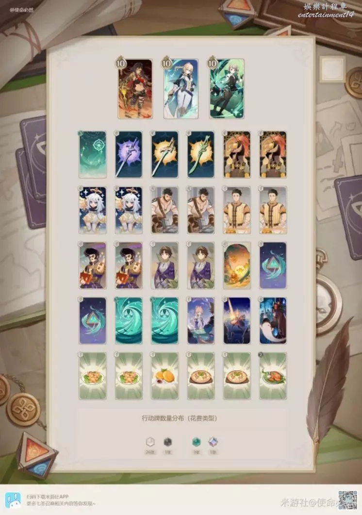 炸魚薯條:強度一般,因為一吃就是全隊吃,很容易把自己玩崩,比較適配皇女草神卡組,搭配上風自,理論上能t1三動(胡doge)。