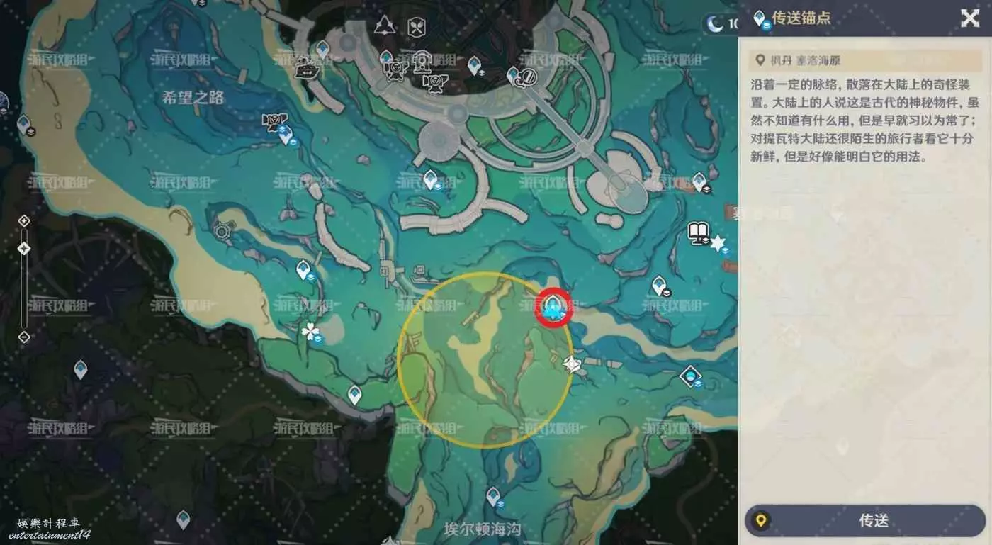 位置參考下圖,能量點為下圖紅色序號,藏寶地為下圖藍色序號。沒有固定順序,編號僅為方便標記。