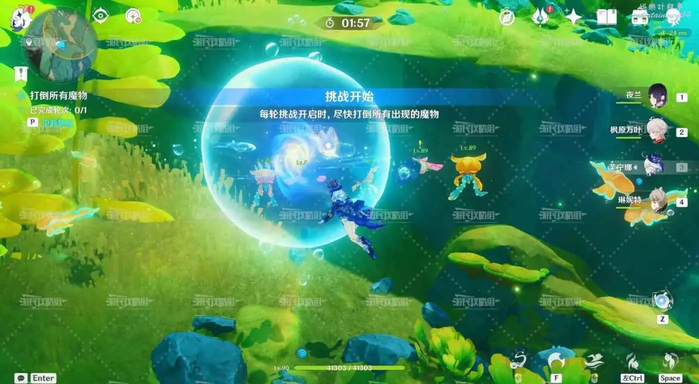 本關的每個能量拾取之前都需要完成一個挑戰,戰鬥挑戰擊敗所有魔物即可;胖胖果挑戰需要吸取旁邊異種鰩魚的能力,躲開髒髒果擊碎所有胖胖果即可完成挑戰,攻擊次數不限,也可以一個一個擊碎。