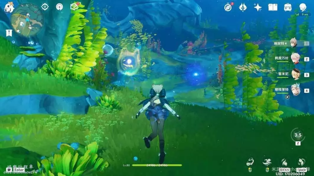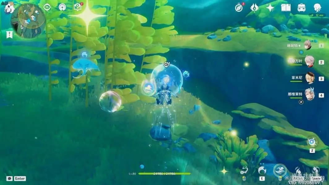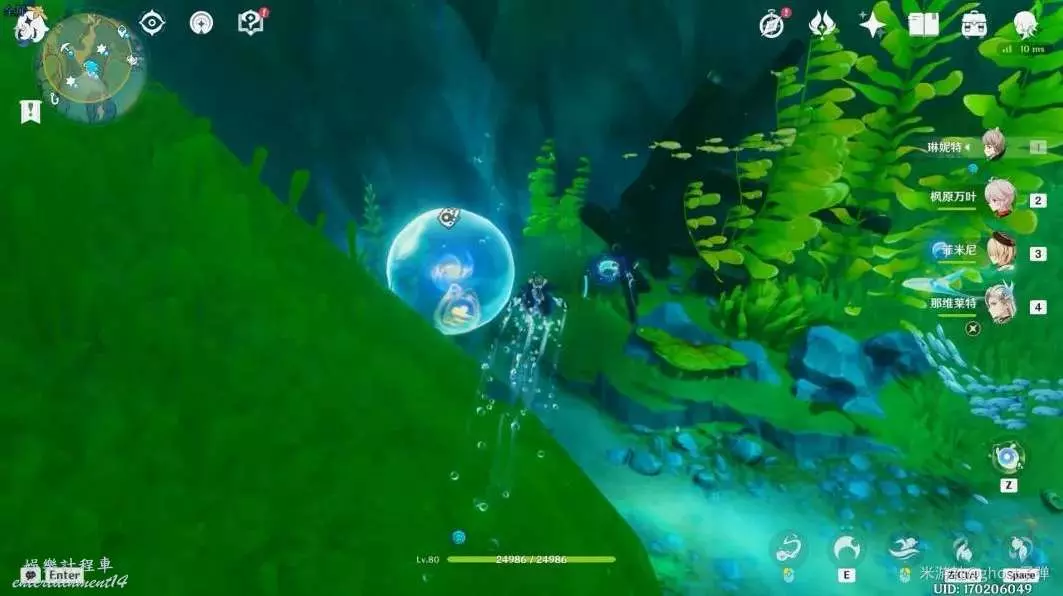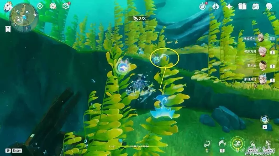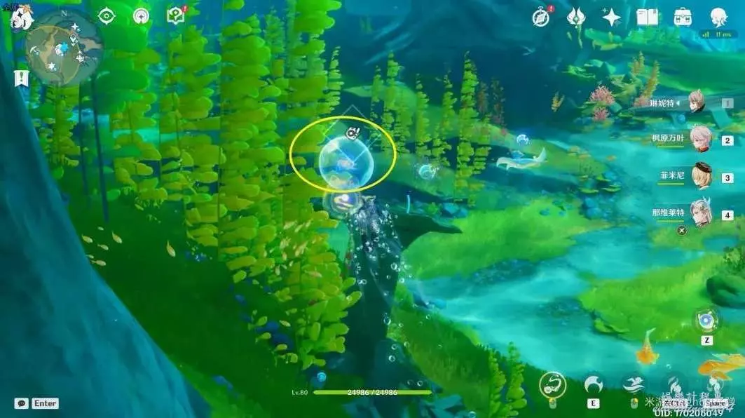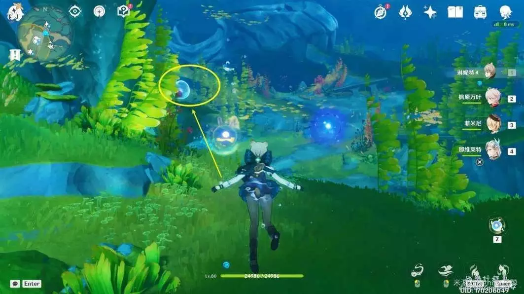 朝小地圖西南方向遊去,可以看到一個被泡泡包裹的藍色旋渦。