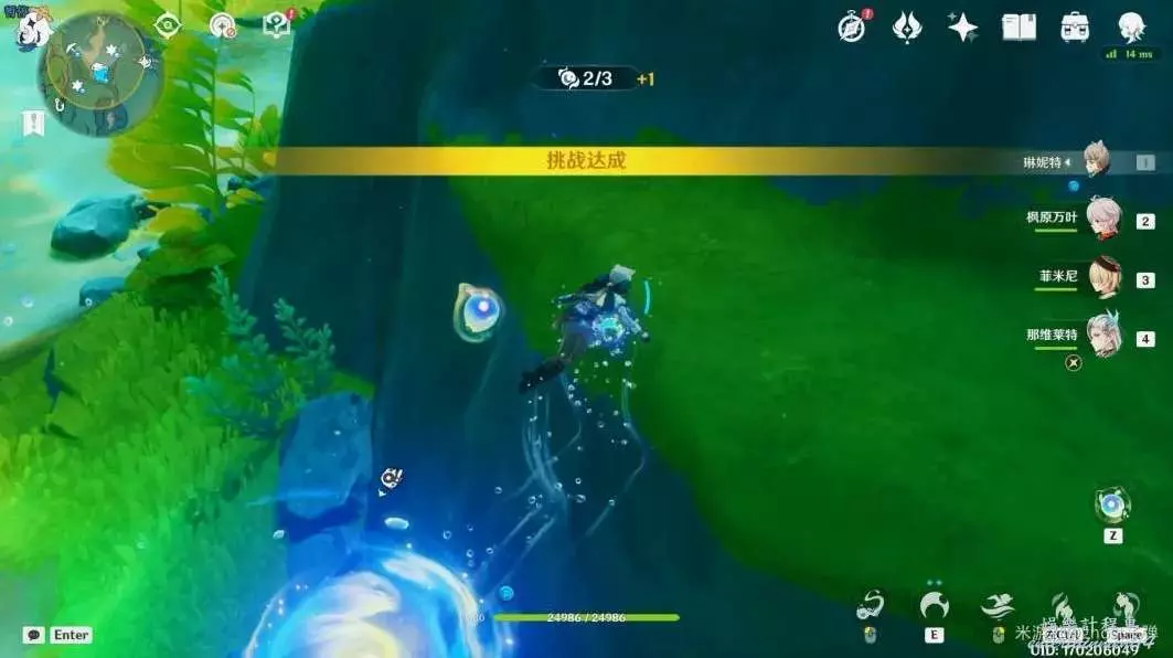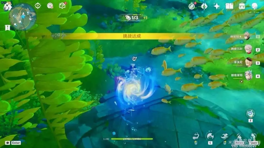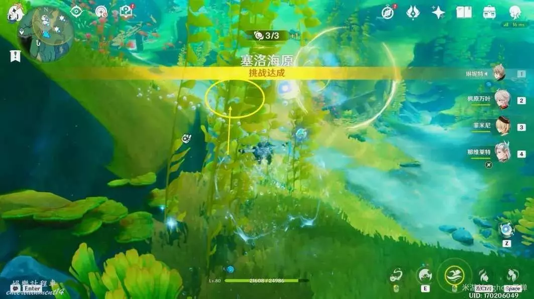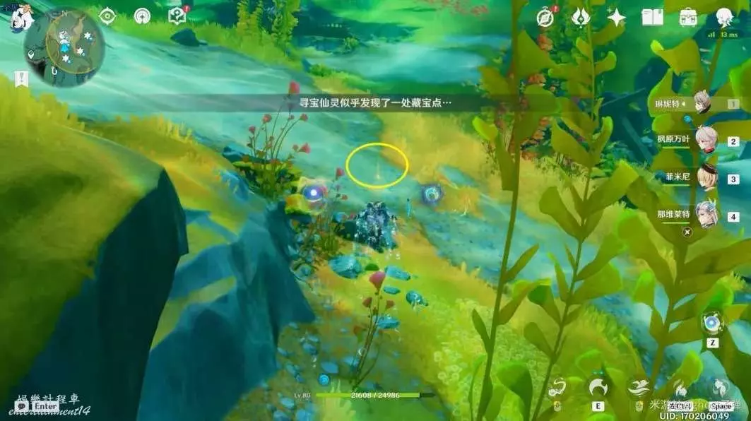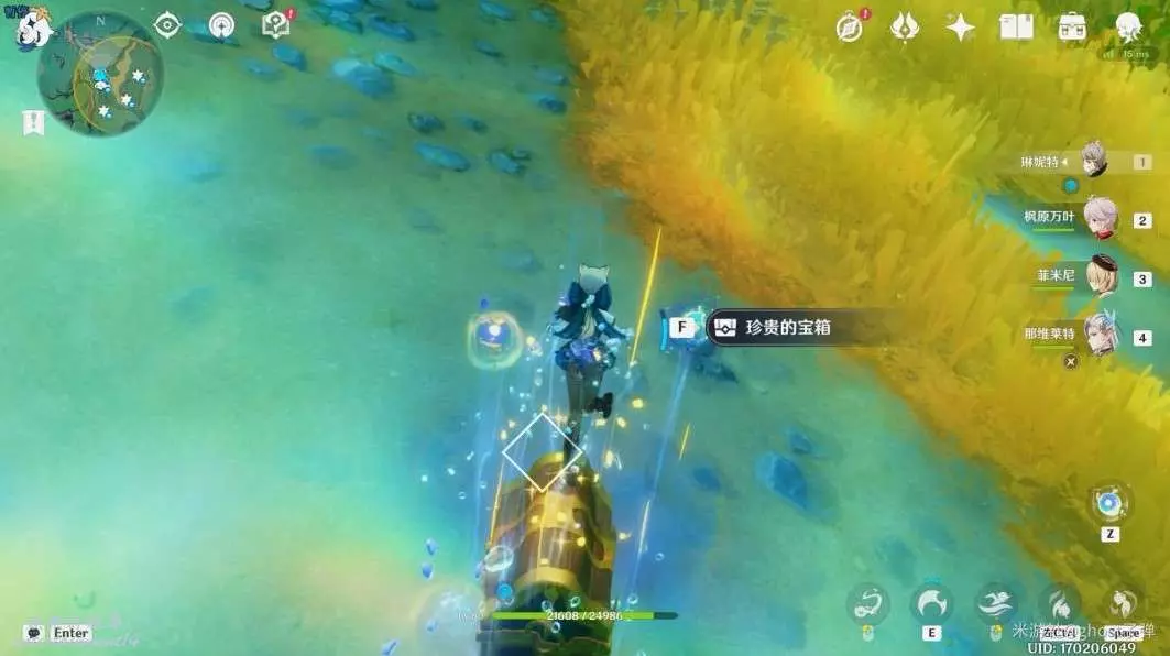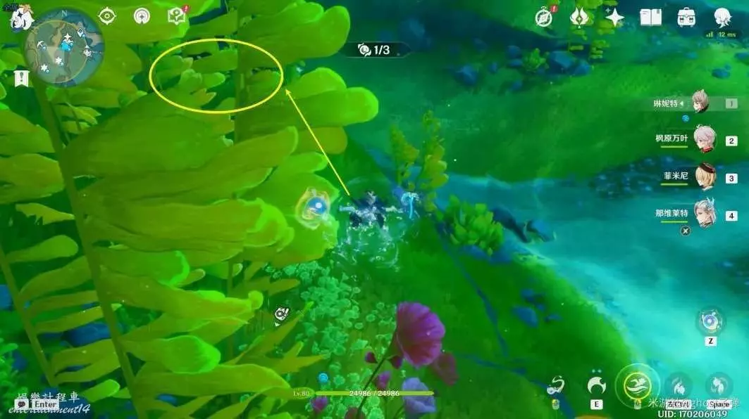 朝小地圖西南方向遊去,可以看到一個被泡泡包裹的藍色旋渦。