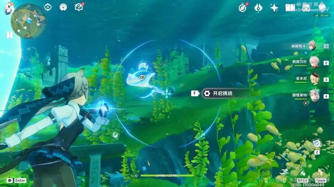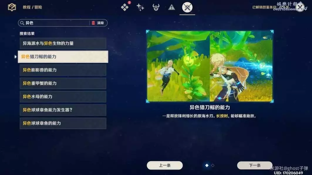 旁邊有異色獵刀鰩,通過滑鼠左鍵選中,獲取它的能力,接下來的挑戰裡我們全程使用長按E的方式釋放它的能力。