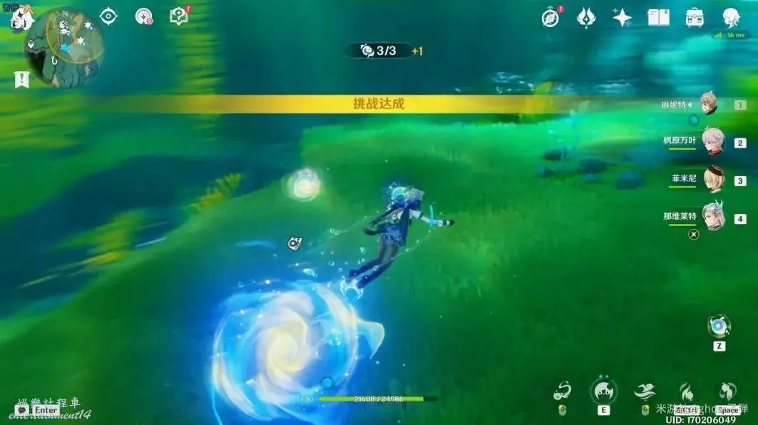 挑戰完成,接觸藍色漩渦。
