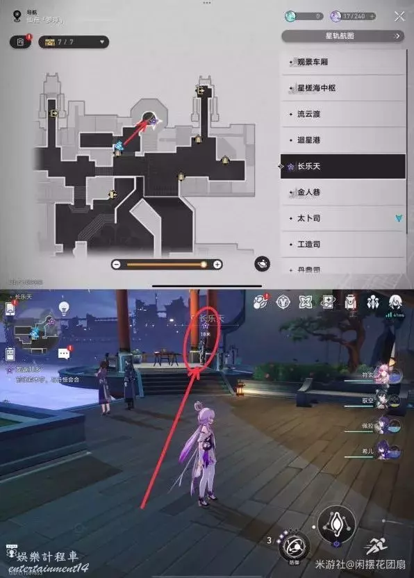 從長樂天出發,跟著箭頭走,靠近丹恒進入劇情