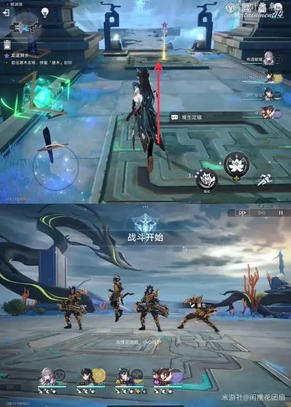 跟著箭頭走,保持蜃影迴響,避開敵人,到達指定位置進入劇情,劇情中需要擊敗兩波怪