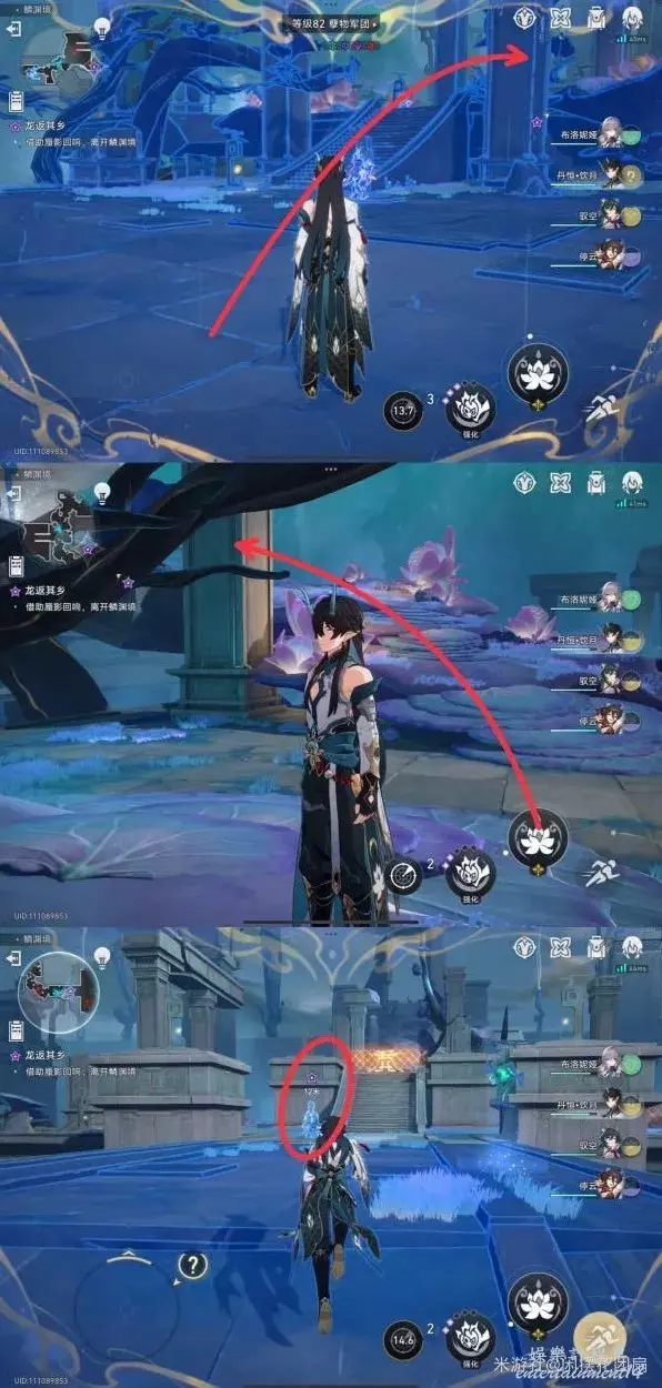 跟著箭頭走,保持蜃影迴響,避開敵人,靠近第三個持明蜃影