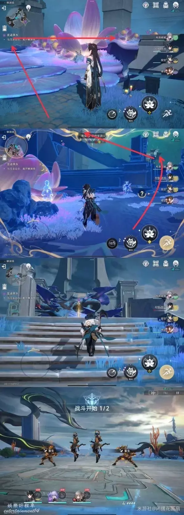 跟著箭頭走,靠近第一個持明蜃影,進入劇情