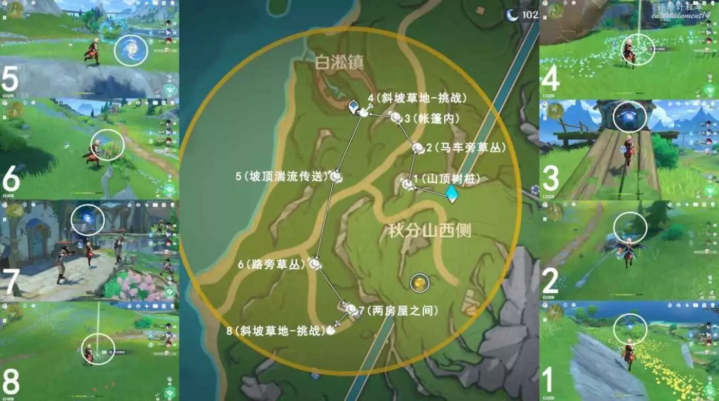 8(山頂草地-挑戰):前往山頂,進入湍流收集能量返回後挖掘;