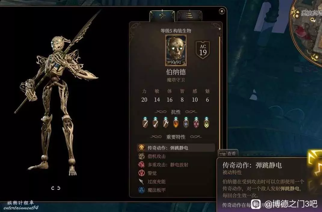 在樓下看過法師塔主人的戲曲可以說服機器人先不攻擊來佈置場地,然後在附近撿撿破損的機械做幾個閃電抗性藥水,做完後可以在樓下拿個水桶打破來消減boss抗性(不會低對)另外傳奇動作是能反應才能放的,所以可以阻止他做出反應(倒伏和命令術)。
