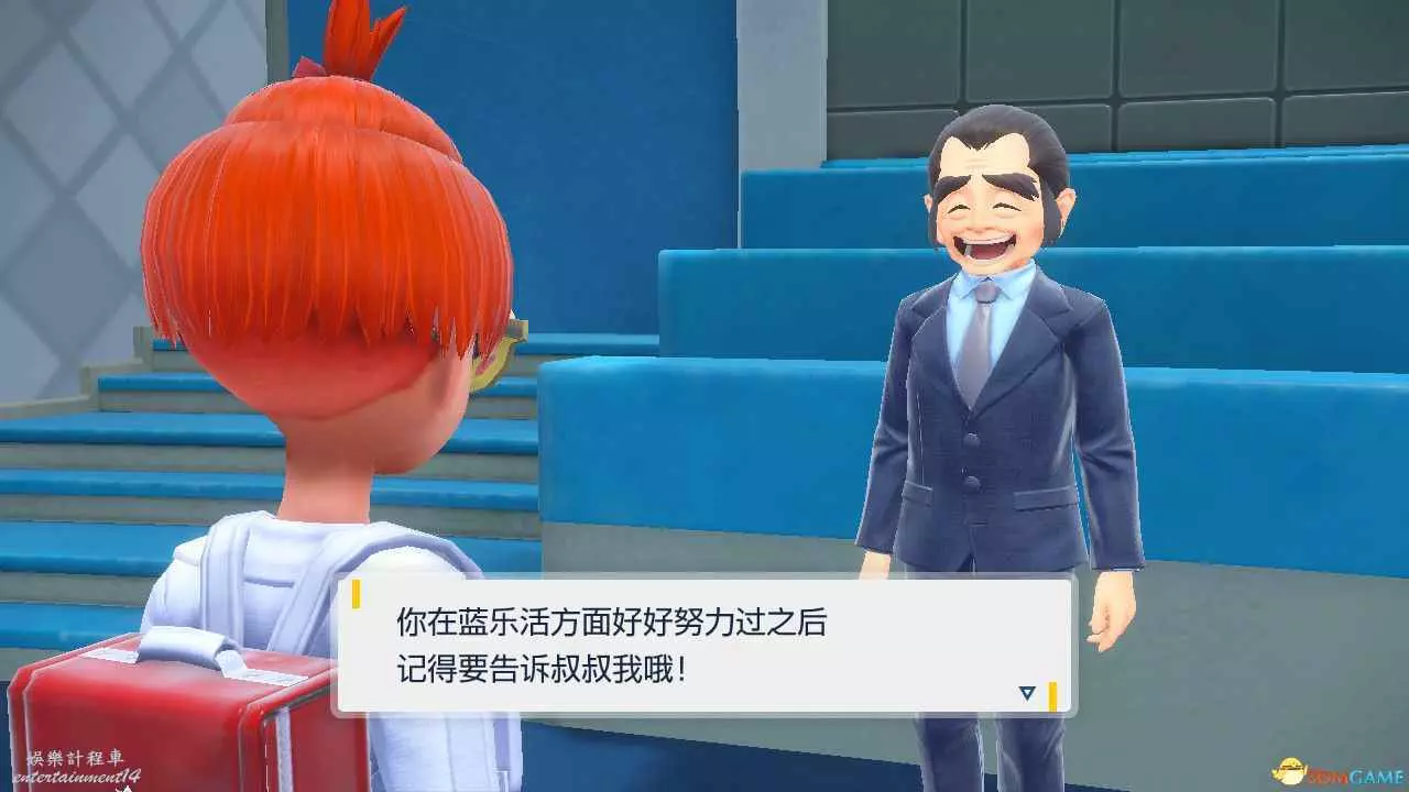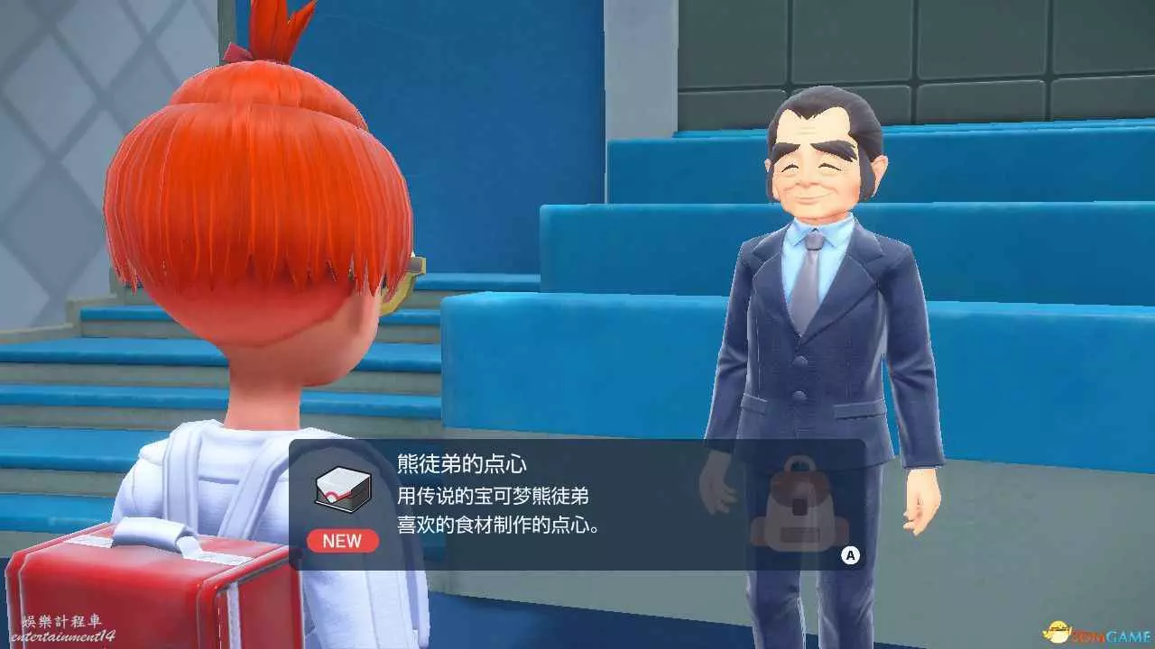 通關後在藍莓學院入口大廳這個位置可以看到黑色西裝大叔,他就是點心大叔。
