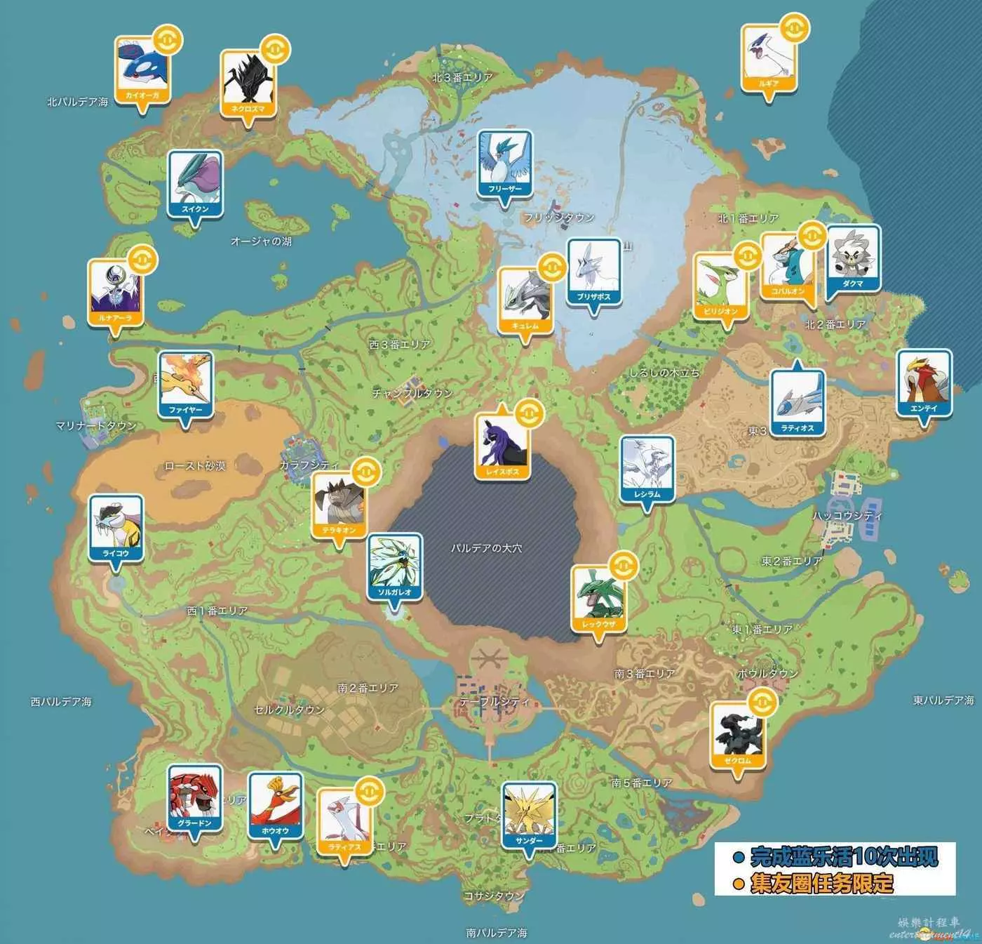 所有神獸位置如圖,此為朱版,紫版位置不變只是藍樂活/集友圈寶可夢解鎖方式互換。