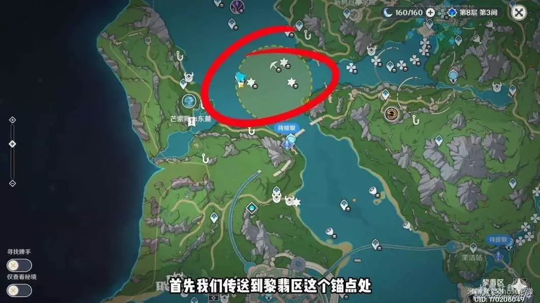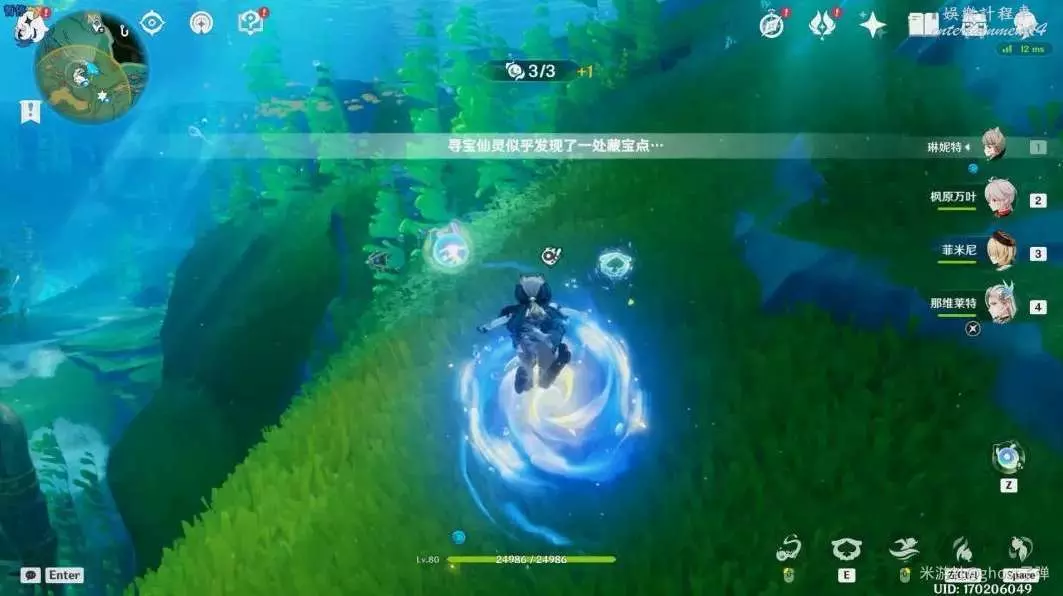調轉視角,朝小地圖西北方向斜向上移動,可以看到被泡泡包裹的藍色旋渦。