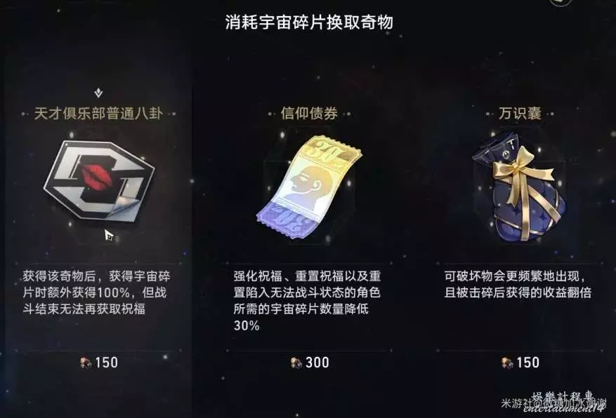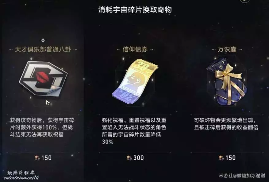 再來點加增加宇宙碎片的條件,比如‘和平的代價’和‘異質·利息’等等