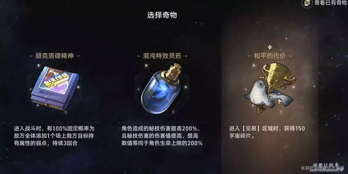3.進入遊戲後,開局選擇獲得一件奇物,需要把奇物 ’ 和平的代價 ‘ 給刷出來。