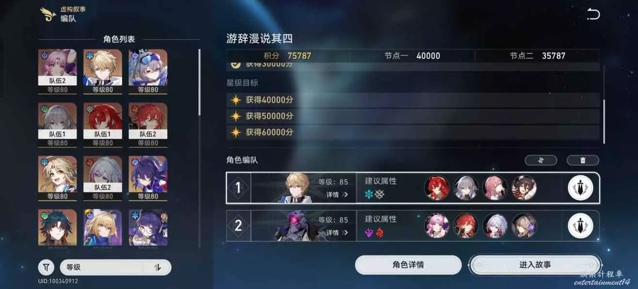 後2關較難 需要智識或者AOE技能多 傷害高的角色 比如:銀枝 妥妥的虛構敘事獨一檔的存在 90能量大招就可以美一直捍