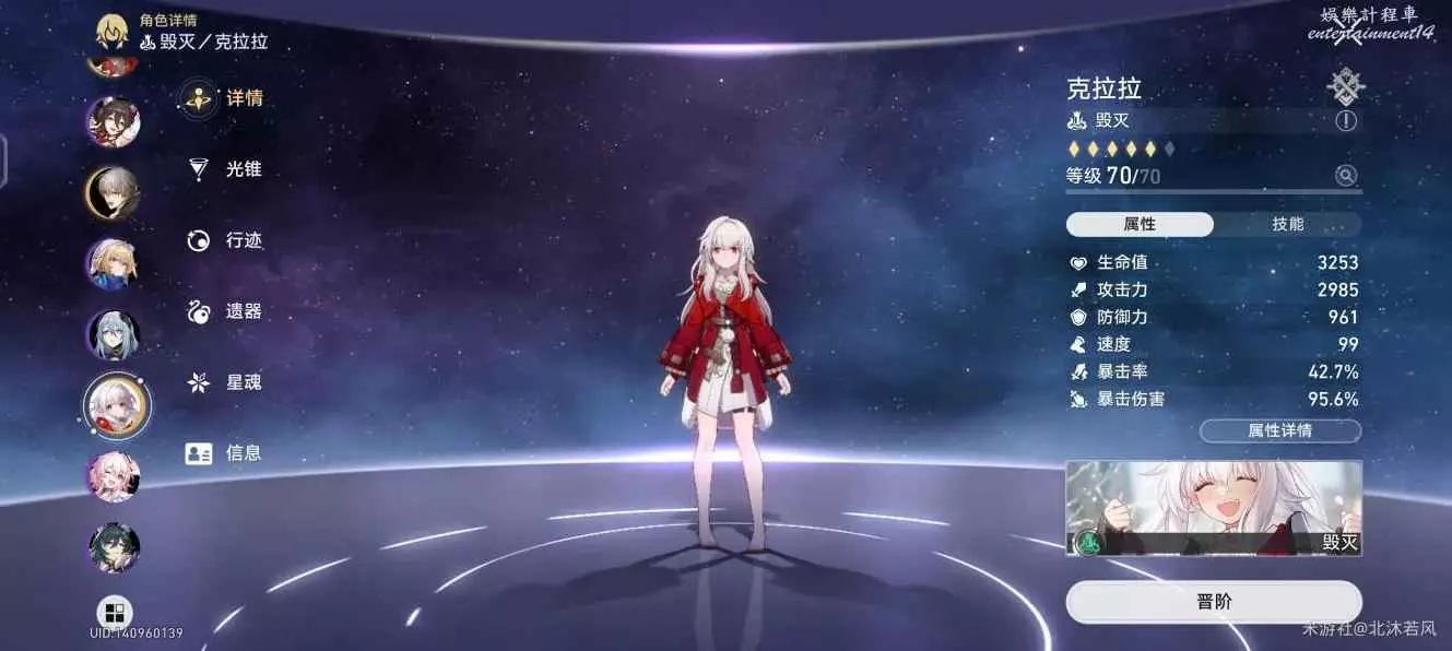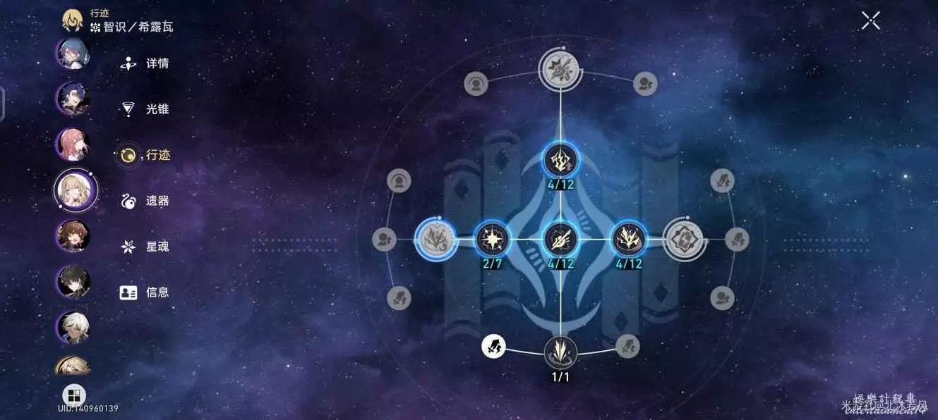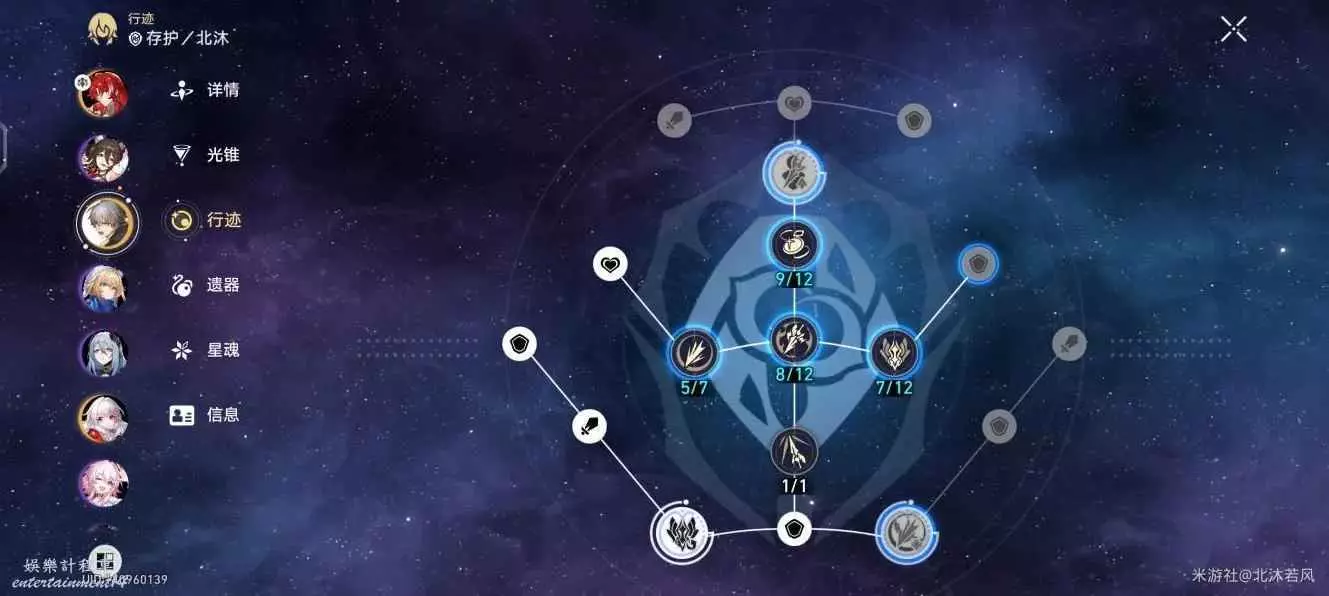 下半配隊角色面板(附帶行跡)