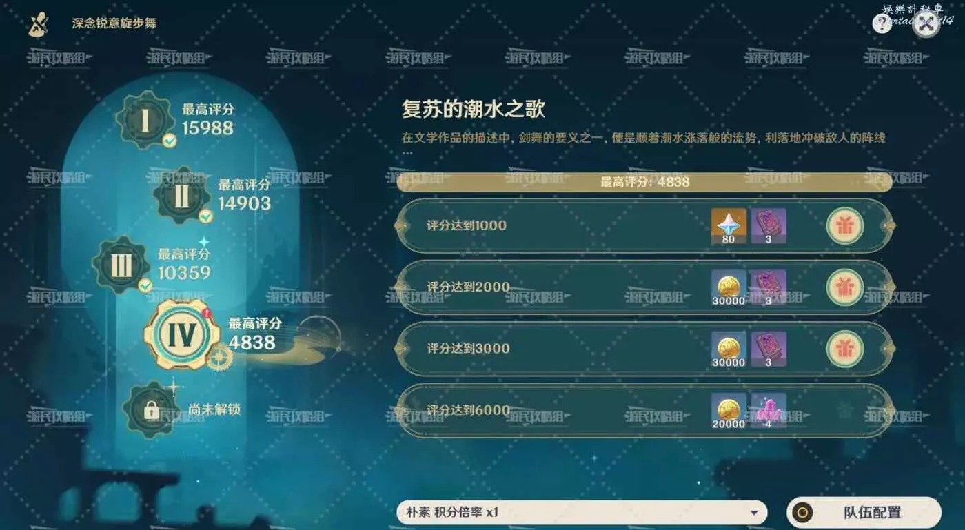 評分達到1000/2000/3000/6000(僅想拿原石的話只需評分達到1000即可)