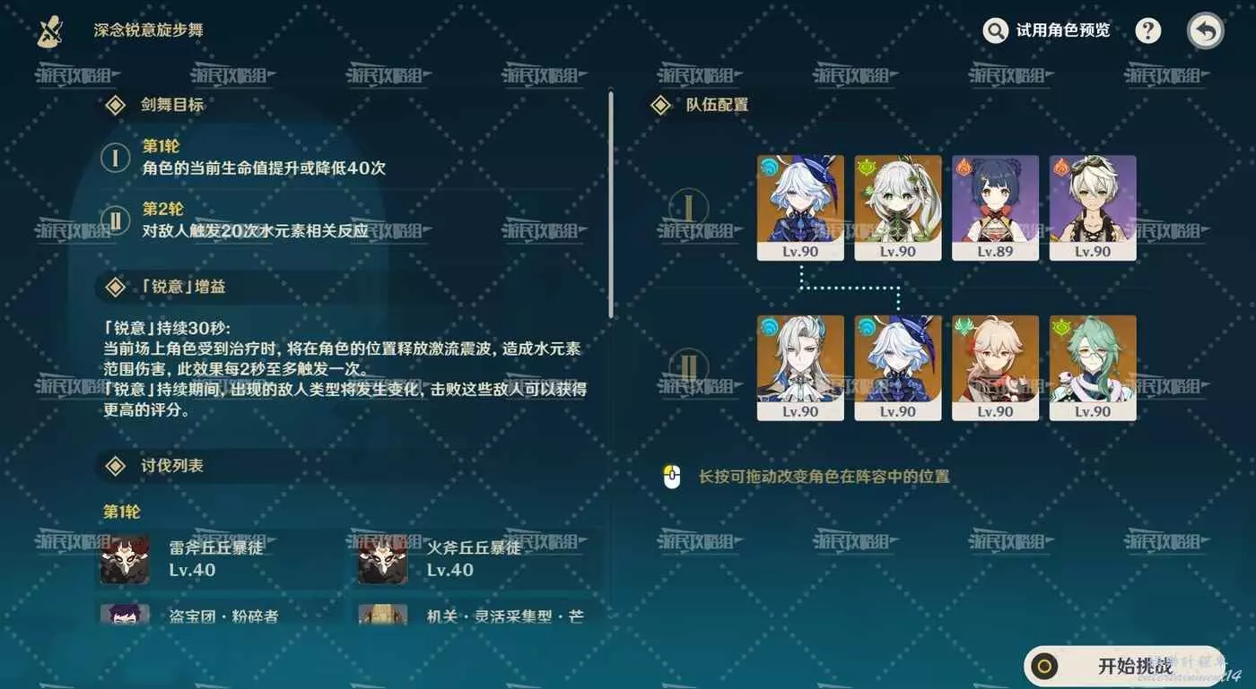 下面列出比較容易達成本關劍舞目標的單個角色,方便大家選擇(僅角色,非陣容):【第一輪】芙寧娜、萊歐斯利、那維萊特、久岐忍;【第二輪】芙寧娜、那維萊特、夜蘭、行秋