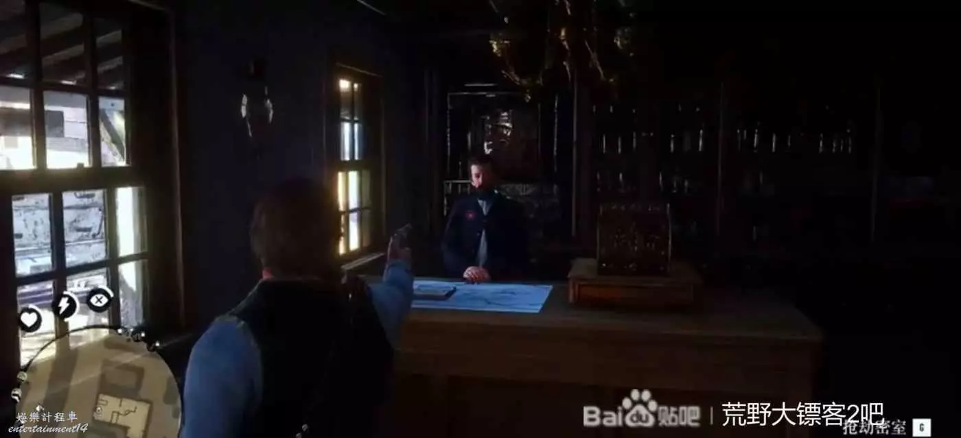 首先去到瓦倫丁的診所後方,如下圖所示上面標的位置,走到窗戶前面,右下角就會觸發看的選項,在看完之後左上角就會顯示搶劫,直接來到前面,從診所正門進去,掏出槍選擇打劫密室,他會帶我們過去,進去後會碰到四個敵人。